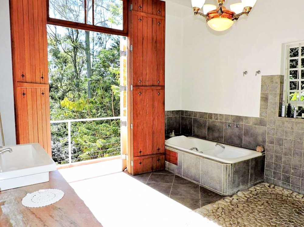 Sendo a máster de 70m², por escada de madeira no piso superior, pé direito alto, grandes janelas, closet, banheiro grande com enorme porta balcão para varanda e linda vista privativa.