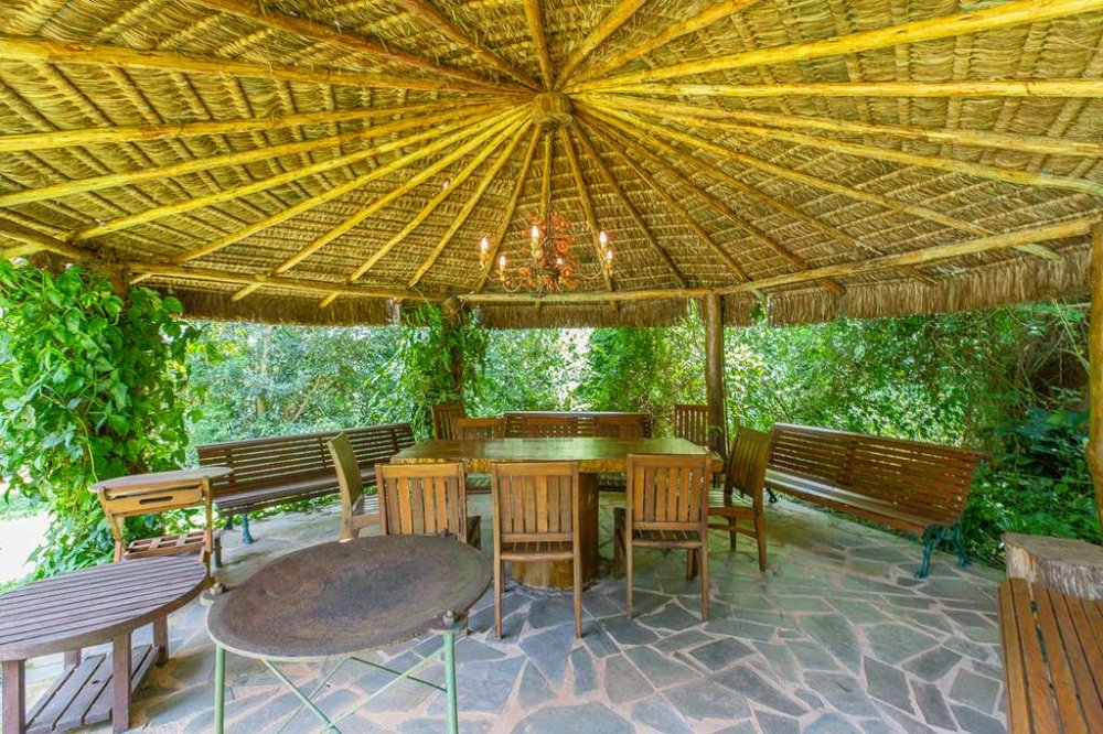 Lindo caramanchão (quiosque) integrado ao salão de festas, com mesa para 10 pessoas.