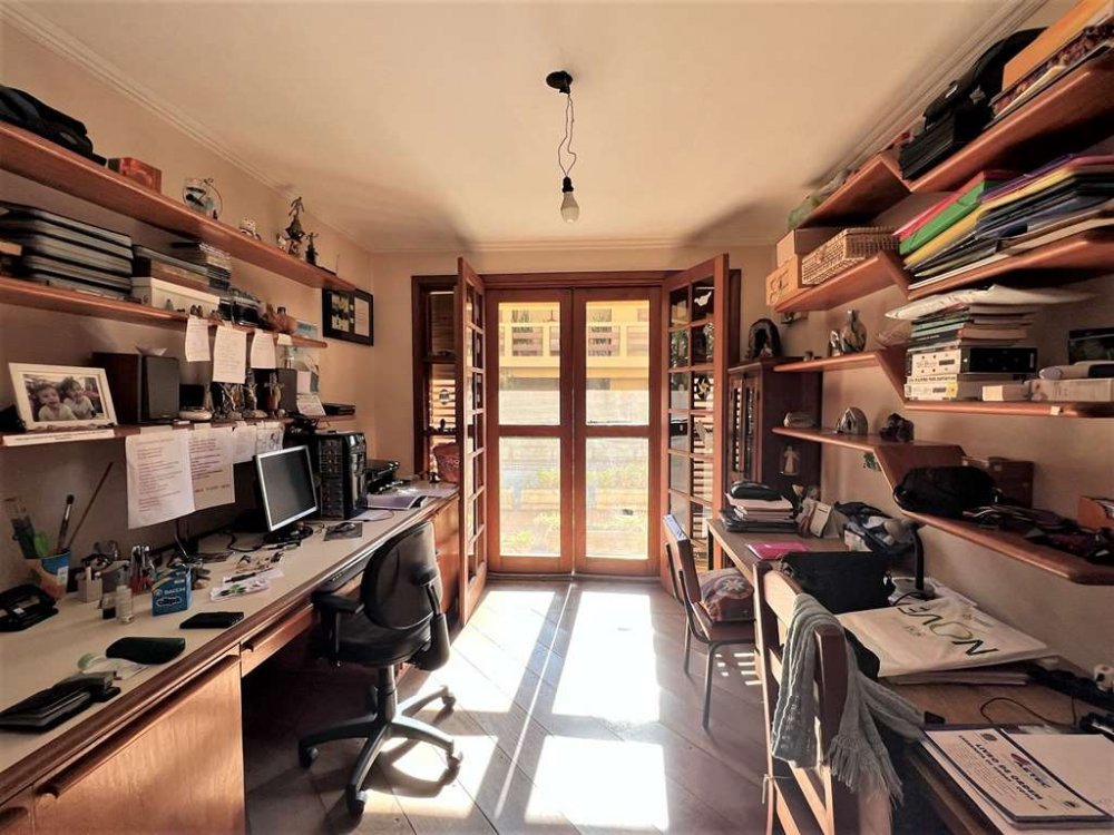 Telas nas portas e janelas dos quartos e escritório.