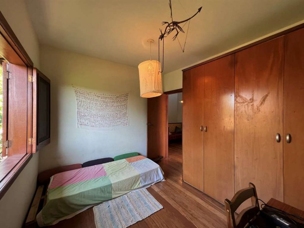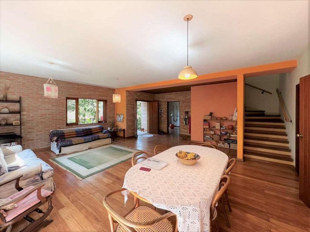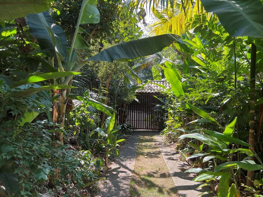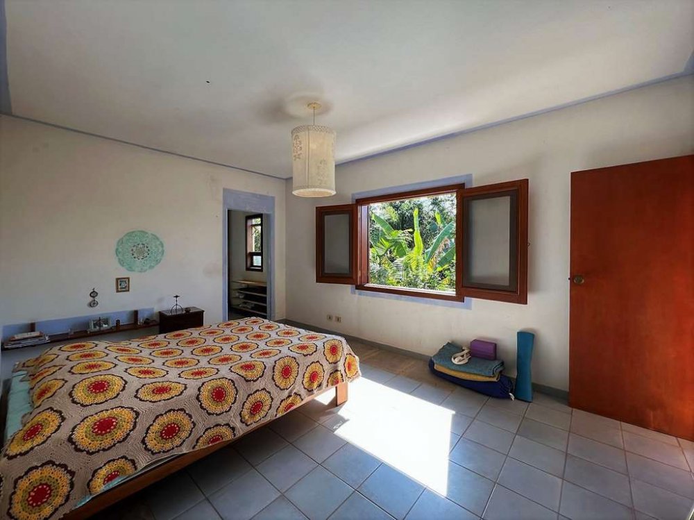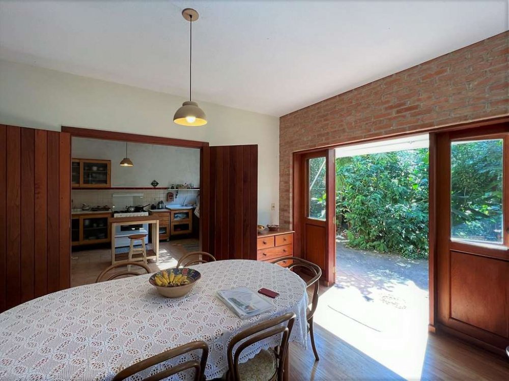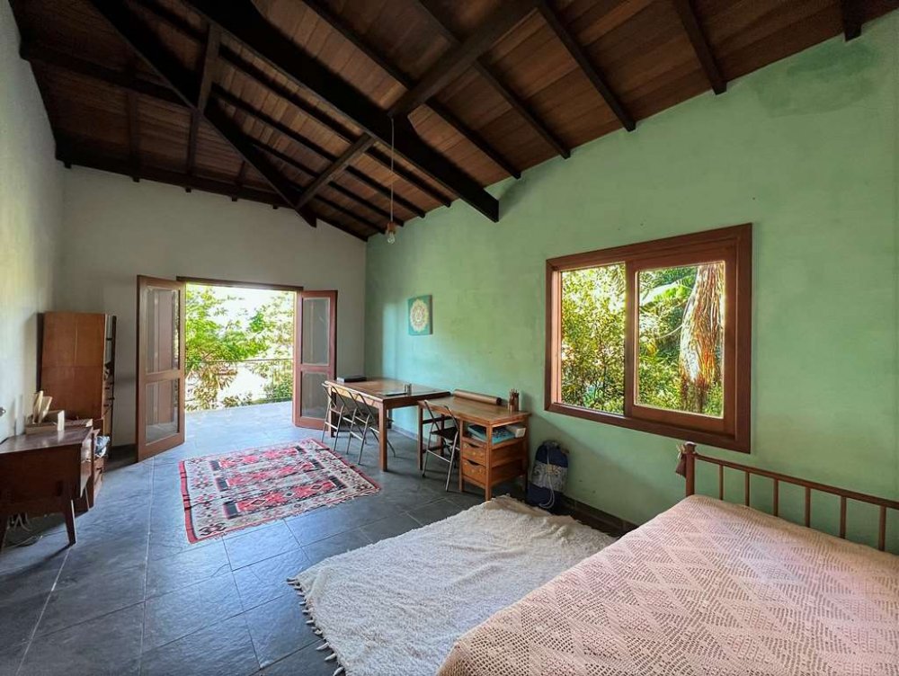 Living para 4 ambientes voltados para o quintal com agrofloresta formada.