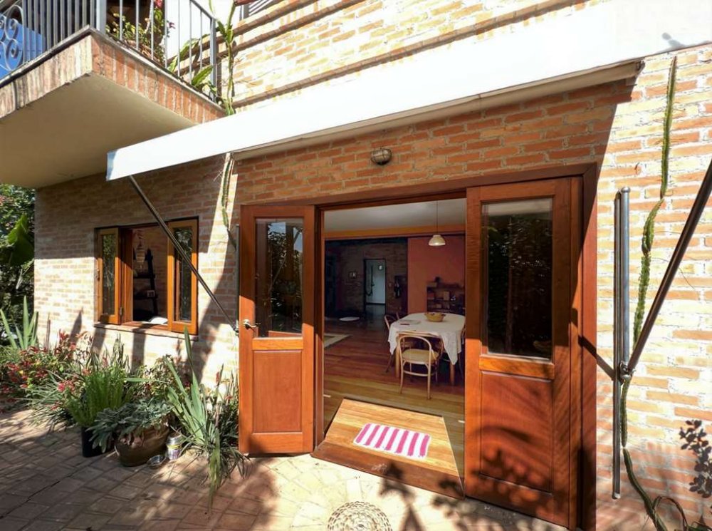 Portas e janelas em madeira Cedro Rosa e vidro. Nos quartos com Veneziana.