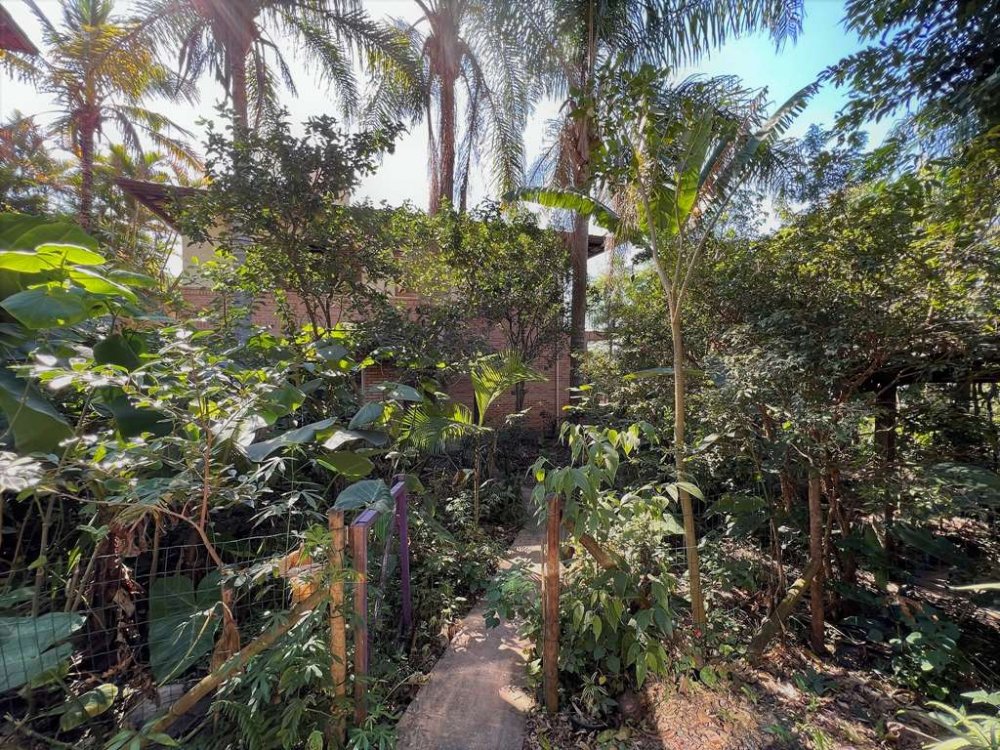 Agrofloresta formada com Palmeiras e frutíferas: jabuticaba, goiaba, araçá, grumixama, cacau, bananeira, lima, mexerica, jerivá, juçara, uvaia, babosa e cerejeira do mato. Cúrcuma, taioba, gengibre.