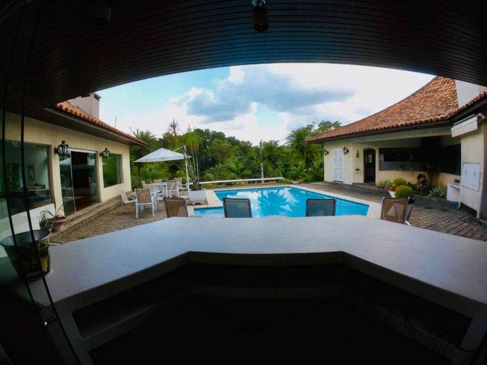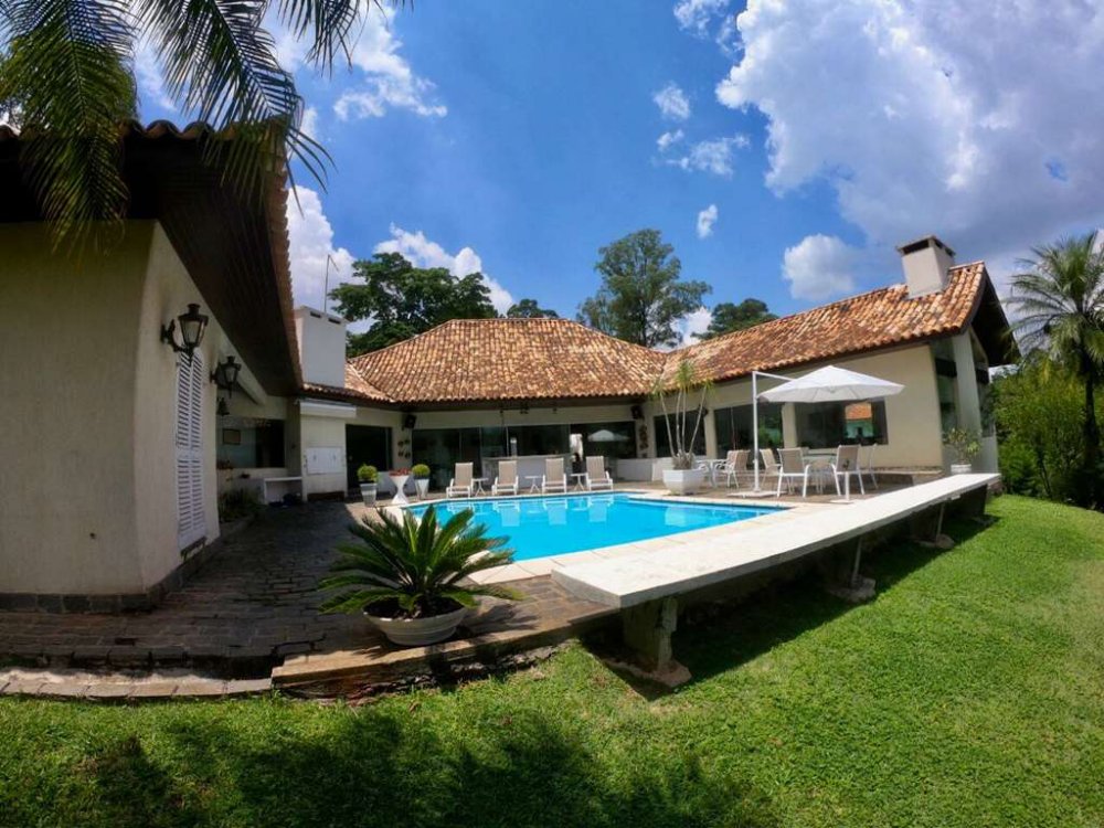 Linda casa térrea contemporânea em formato "U" com a piscina no meio da propriedade. Uma sede de fazenda com todo conforto e espaço a 20 minutos de São Paulo