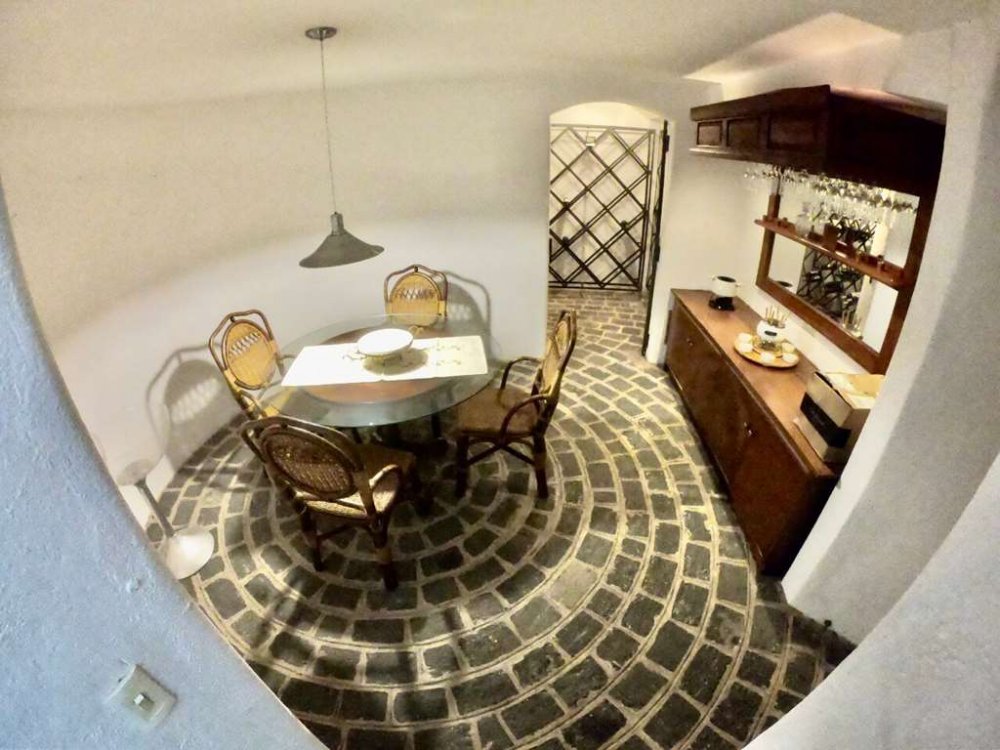 Ampla adega subterrânea com prateleiras para mais de 100 rolhas com sala de degustação.