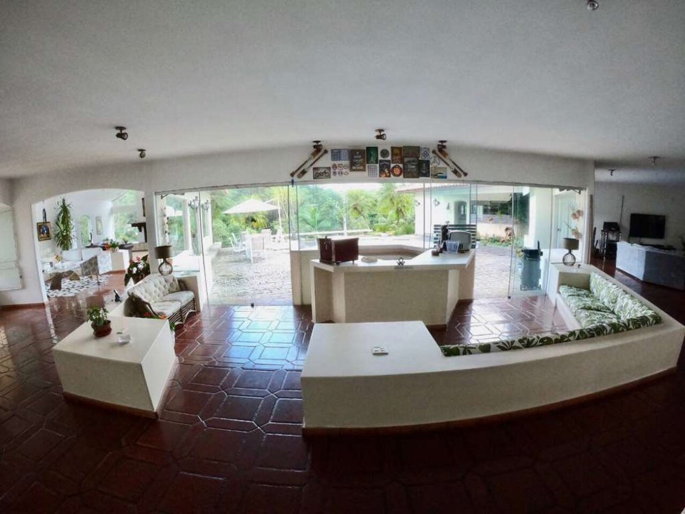 Living para 5 ambientes envidraçados e espaçosos, alguns com sofás em alvenaria. Todos voltados para o lazer da piscina, quintal, jardim e mirante com linda vista.