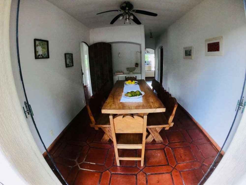 Sala de jantar com aparador, closet de louças e jardim interno