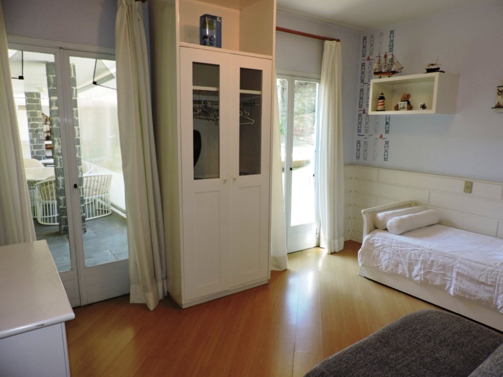 3 dormitórios com armários planejados, sendo 2 suítes c/ portas-balcão voltadas para o jardim.
