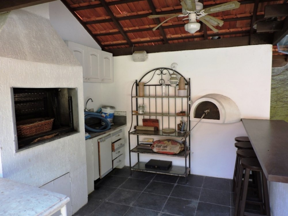 Área gourmet: churrasqueira, forno de pizza, bancada com pia e banheiro.