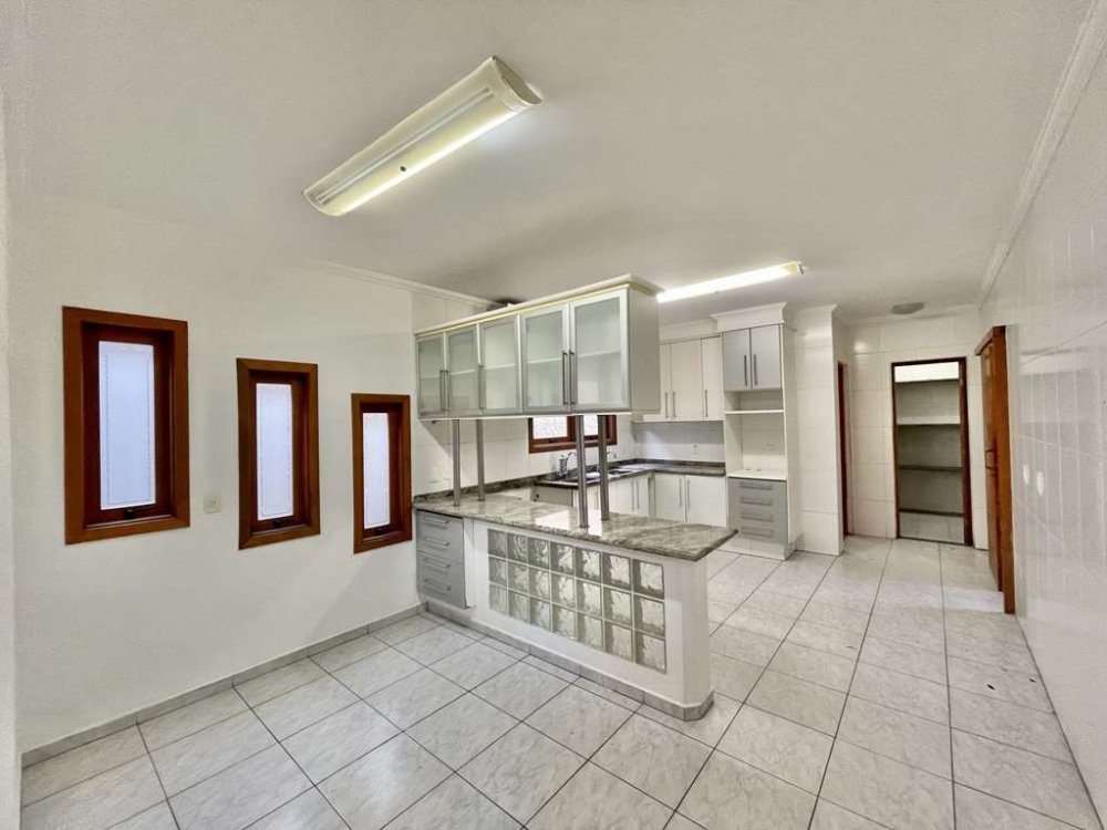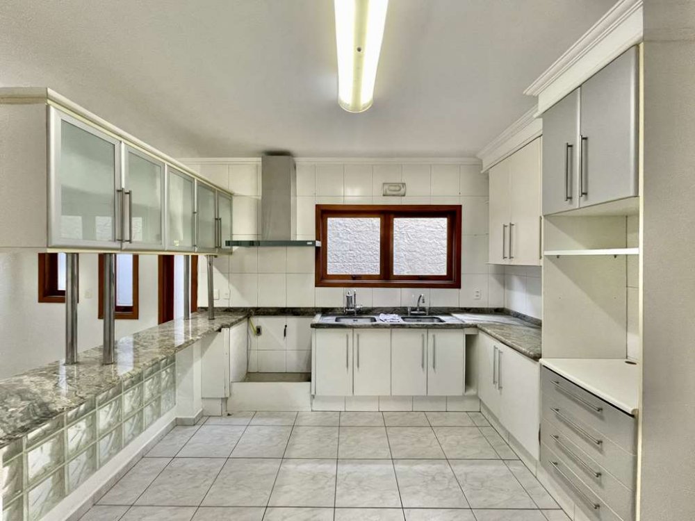 Cozinha ampla e com boa iluminação natural, rica em armários planejados.
