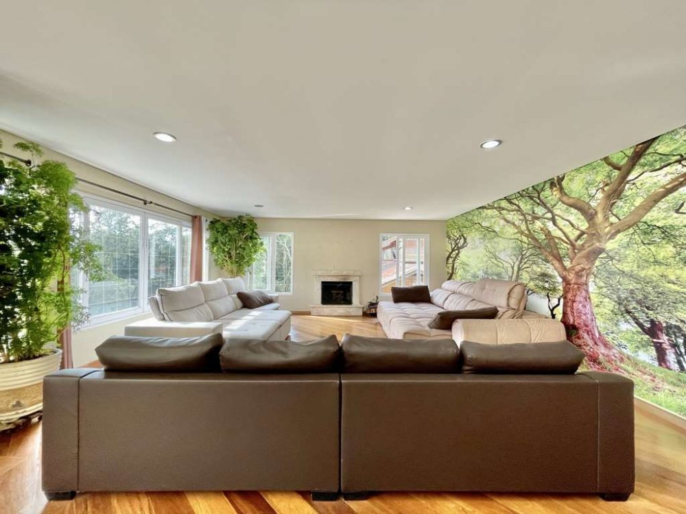 Family room - Home theater com lareira.