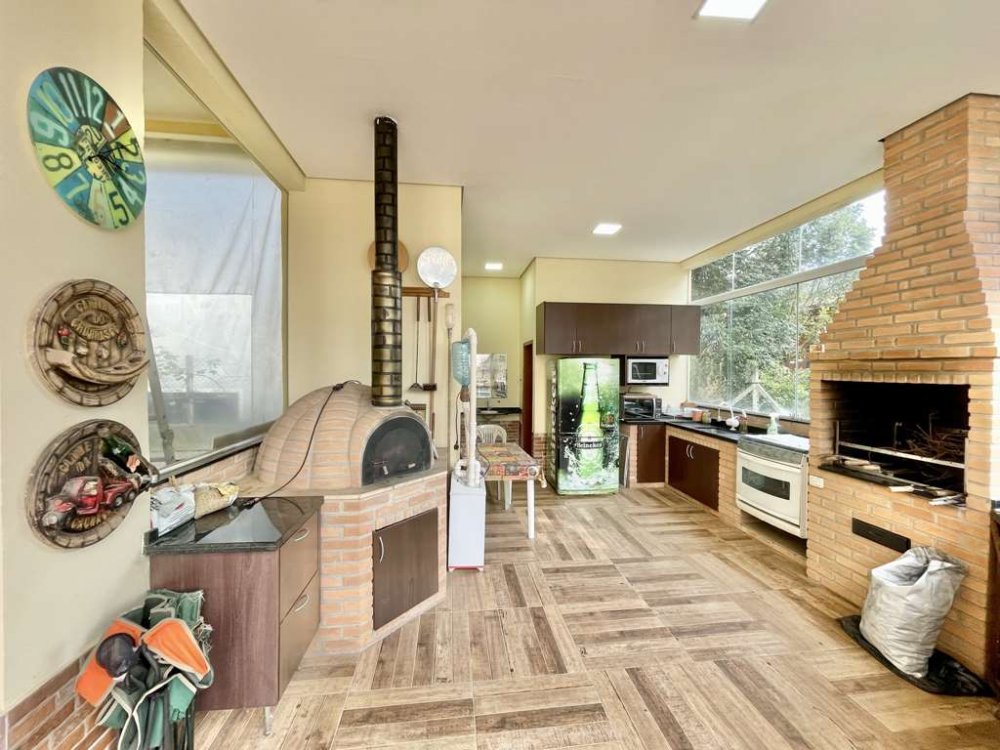 Estar, lareira, jantar, bar e 1 armário ideal para louças ou adega.