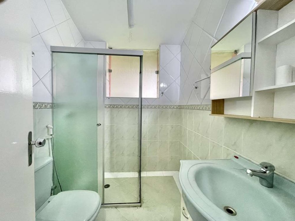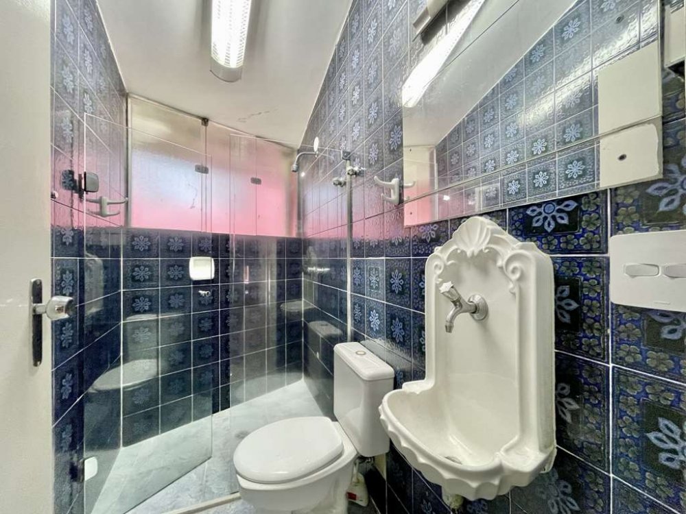 Lavabo e/ou banheiro do escritório com box de vidro e espelho. Ou quarto dormitório ideal para hóspedes.