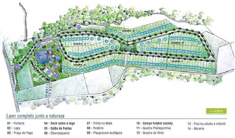 Área de Preservação com Trilhas (23.231m²): Espaço dedicado ao contato com a natureza, ideal para caminhadas e momentos de relaxamento.