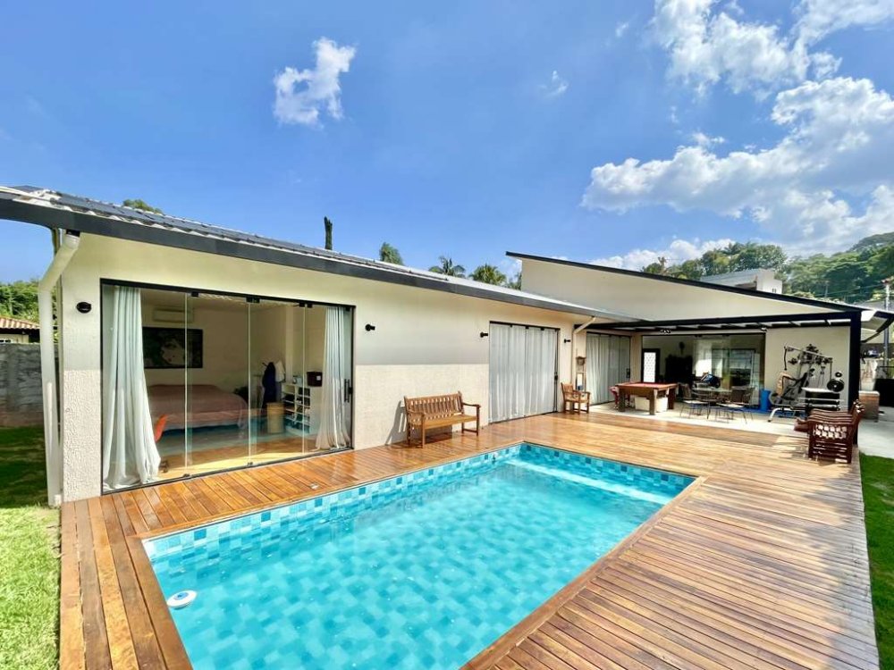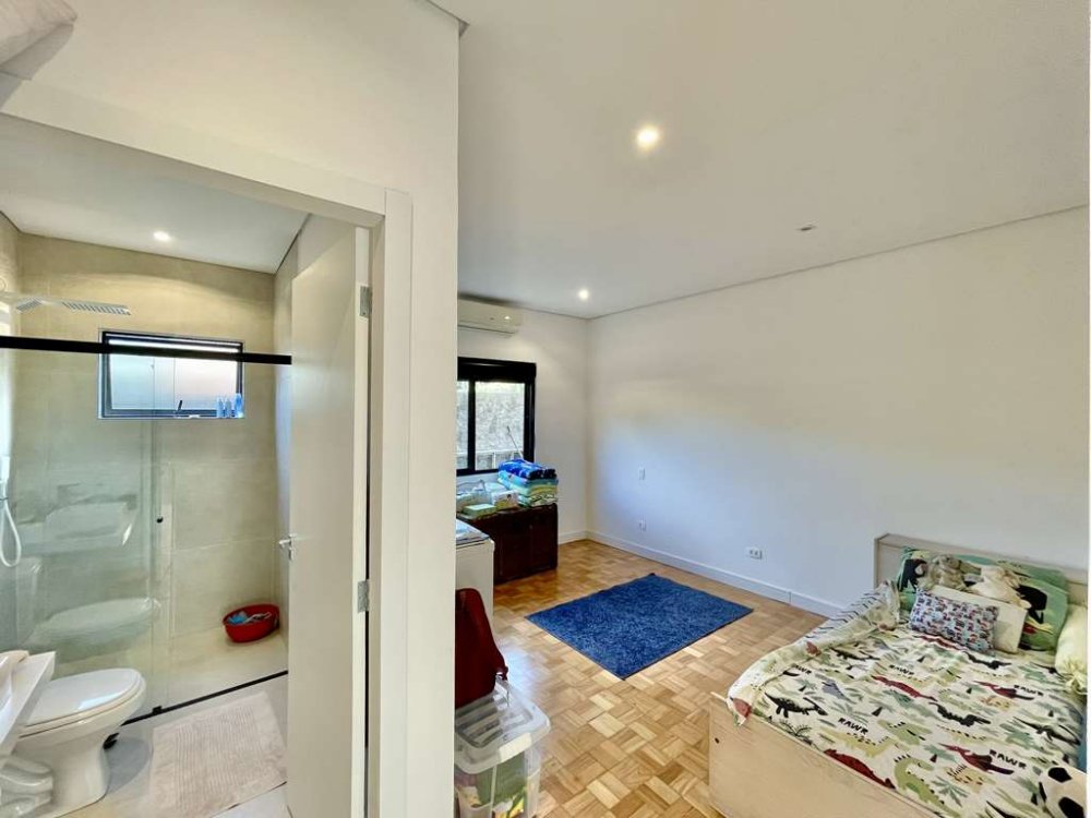3 suítes integradas à piscina e jardim, com ar condicionados Q e F, nichos preparados para armários e na suíte máster com espaço para closet sr. e sra.