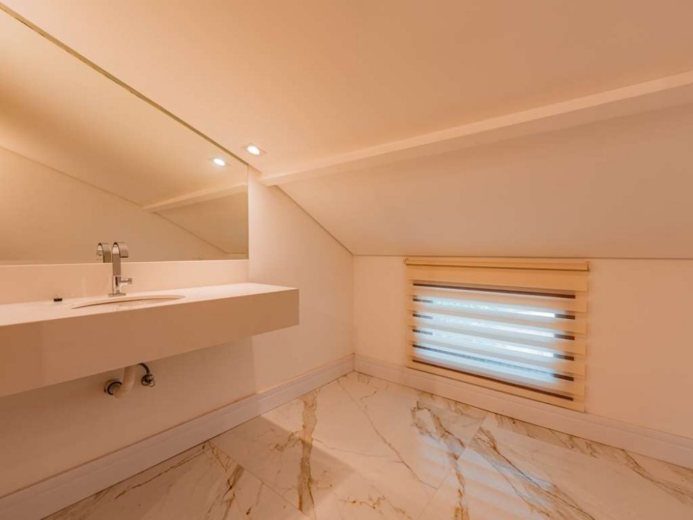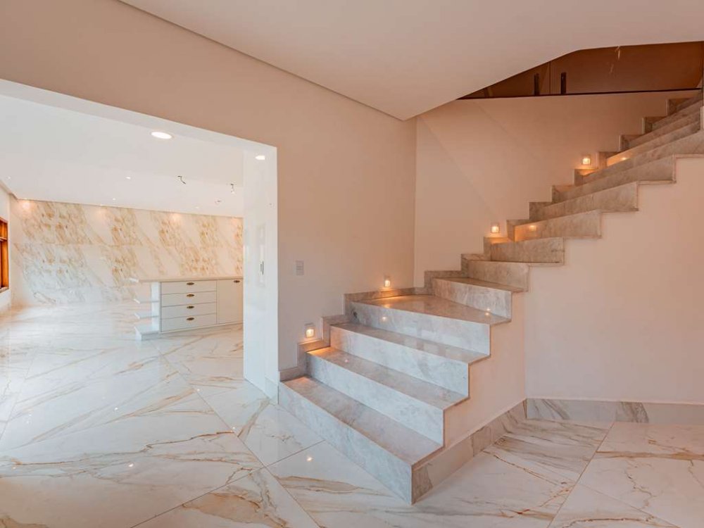- Mezanino: Escada leva ao piso superior, onde encontramos um mezanino amplo, ideal como sala íntima (home theater) ou jogos.
