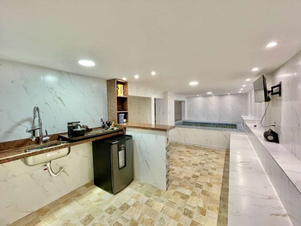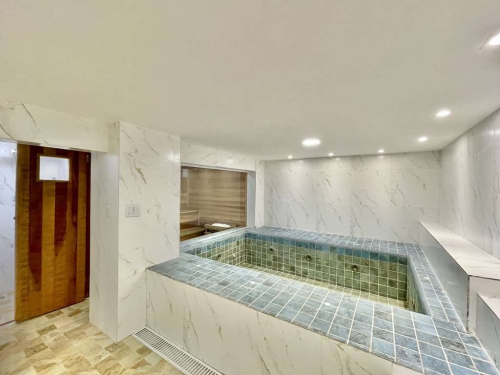 SPA - Hidro para 6 pessoas, sauna seca, ducha e copa / bar com bancada, pia inox e banheiro.