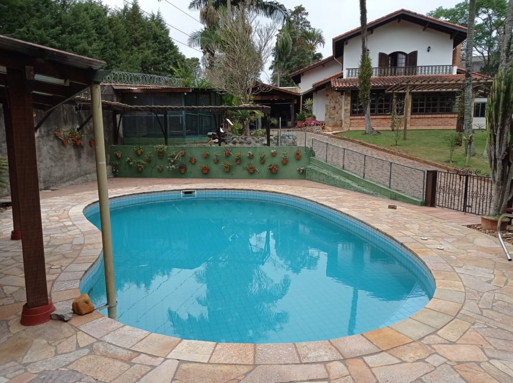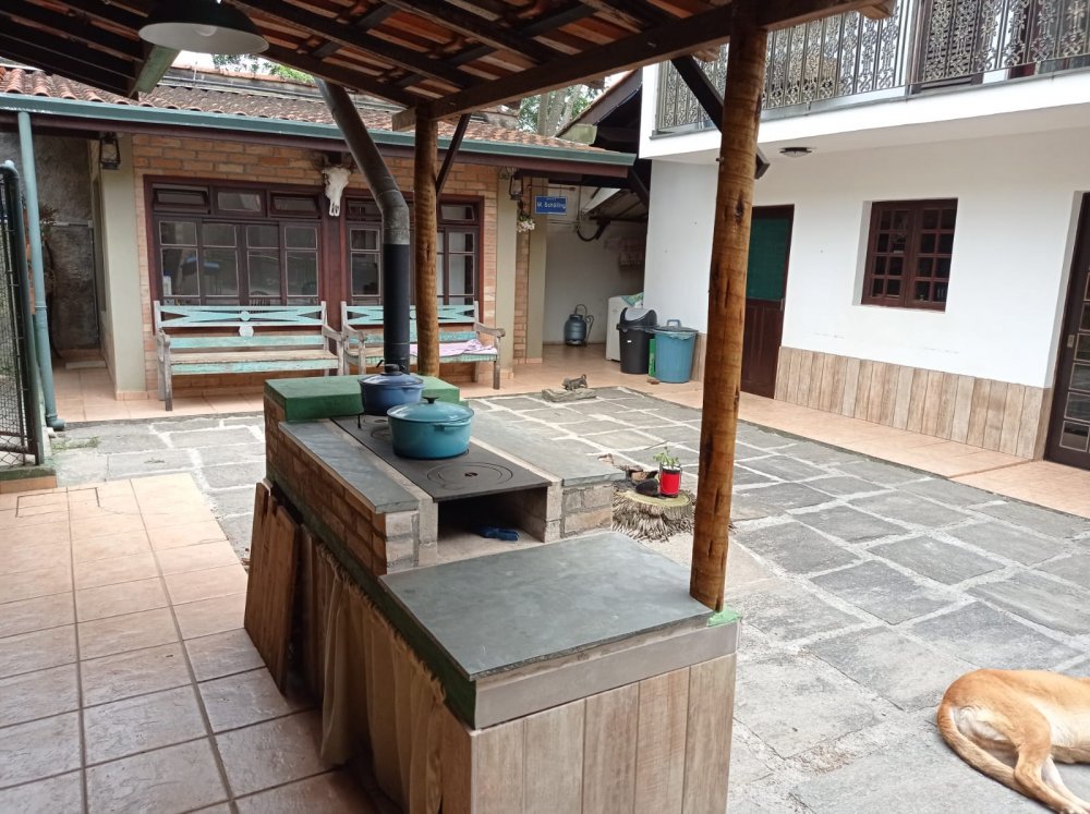 Área Externa: Espaço gourmet com churrasqueira, forno de pizza raiz e fogão a lenha. Piscina orgânica que complementa o belíssimo jardim com laguinho e viveiro de pássaros.