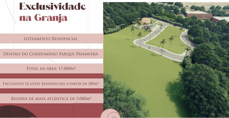 Os lotes do Condomínio Parque Primavera são limitados e estã sendo vendidos rapidamente. Esta é a sua chance de construir a casa dos seus sonhos em um local privilegiado, com toda a infraestrutura e comodidades que você merece.