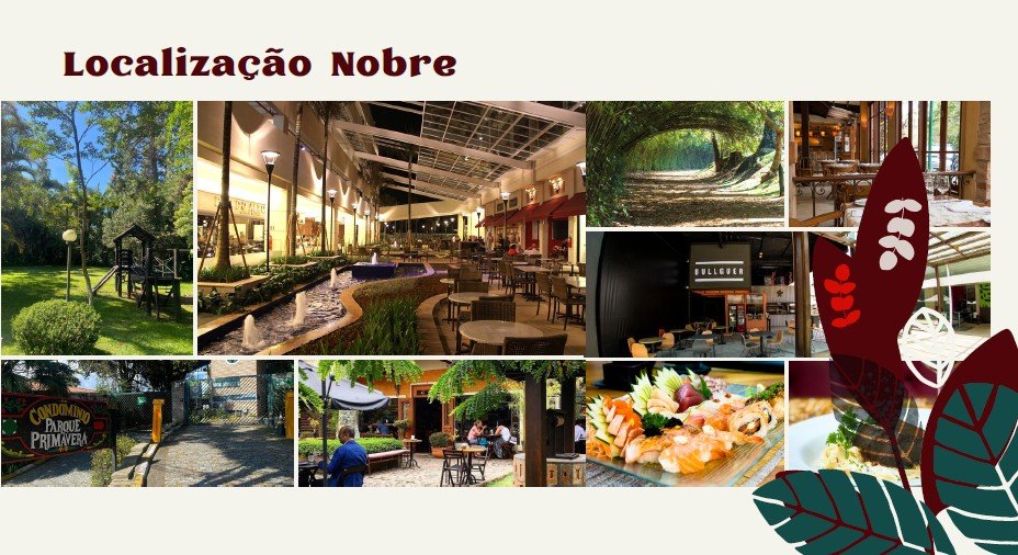 Imagine morar em um lugar onde tudo o que você precisa está ao seu alcance. O Condomínio Parque Primavera está localizado na região mais nobre da Granja Viana, no km 21,5 da Raposo Tavares. Próximo à excelente padaria Dona Deola e ao conceituado Open Mall The Square. A proximidade conta também com supermercados, escolas, academias e com fácil acesso às principais rodovias e marginais, você terá a conveniência e a tranquilidade que sempre sonhou.