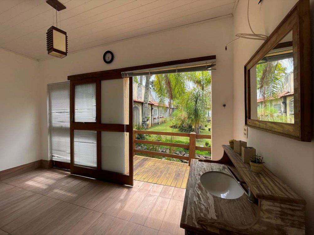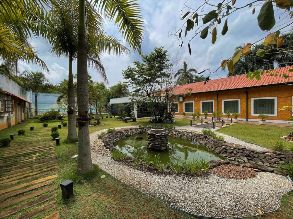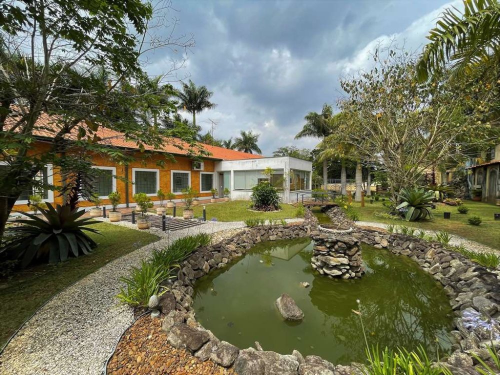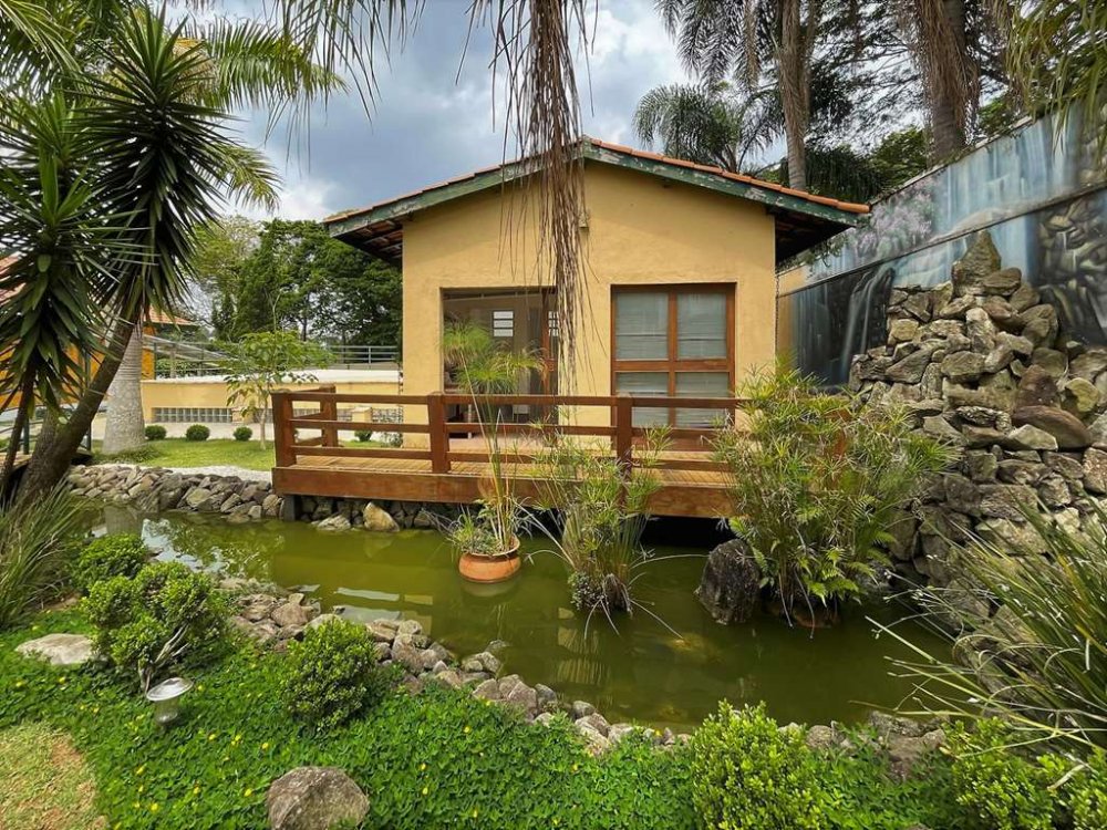 Jardim Encantador: Lindo jardim com lago artificial de carpas, cascata sobre pedras, 2 pontes, orquidário e frutíferas (abacate, amora). Espaço para horta.