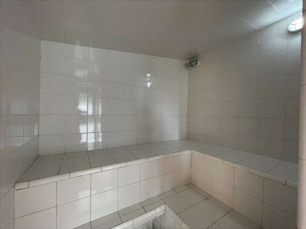 Sauna Úmida: Com sala de descanso voltada para o jardim e vestiário com lavatório externo.