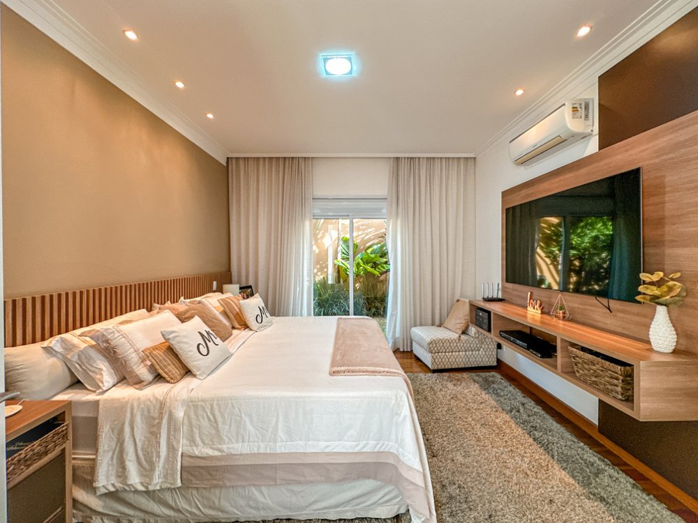 4 suítes com closet e ar-condicionado, sendo 3 no térreo com acesso ao jardim privativo