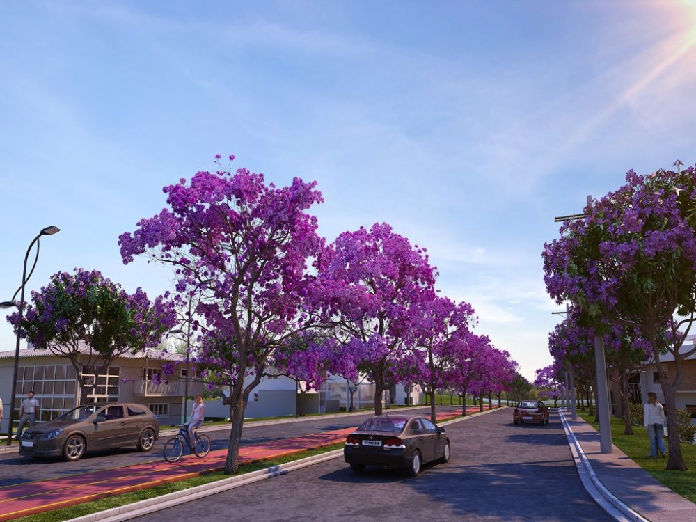 Loteamento planejado com ruas tranquilas e monitoradas por câmeras de vigilância