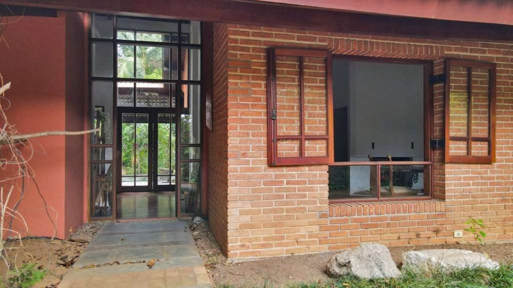 Arquitetura Rústica e Aconchegante: Construída com tijolos aparentes, portas e janelas em madeira e vidro, e telhas de concreto, conferindo um charme singular.