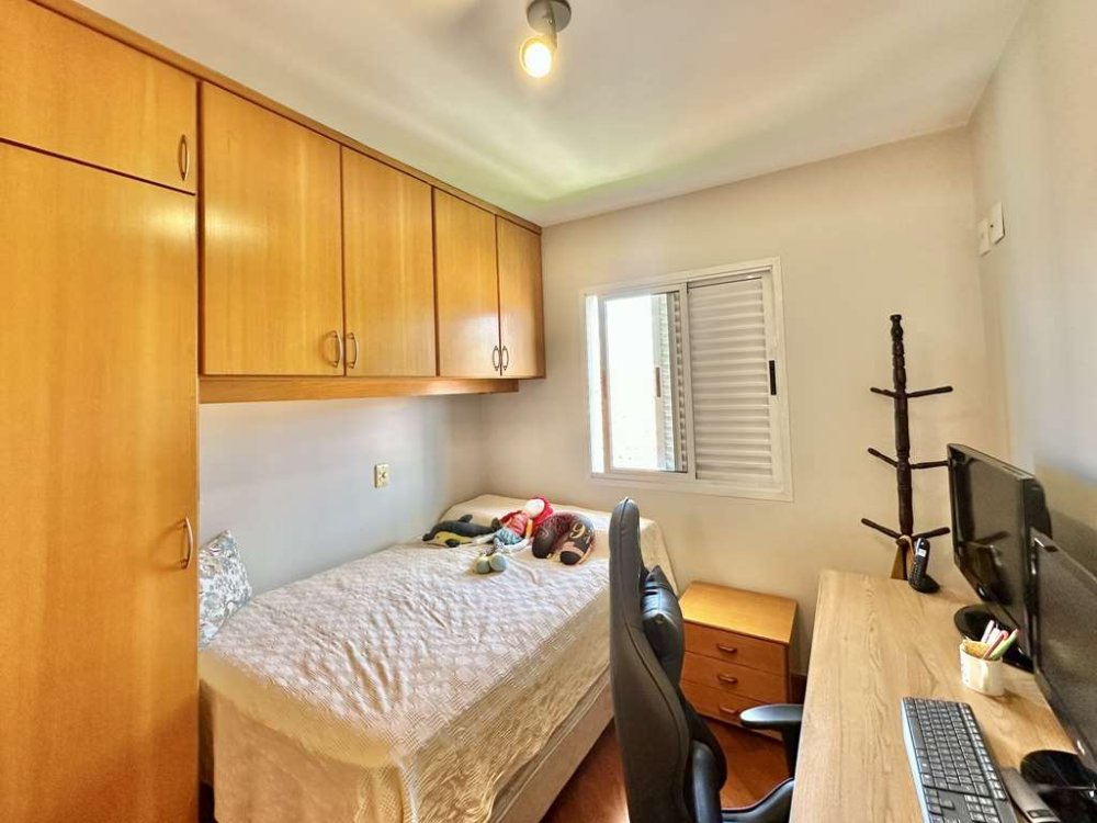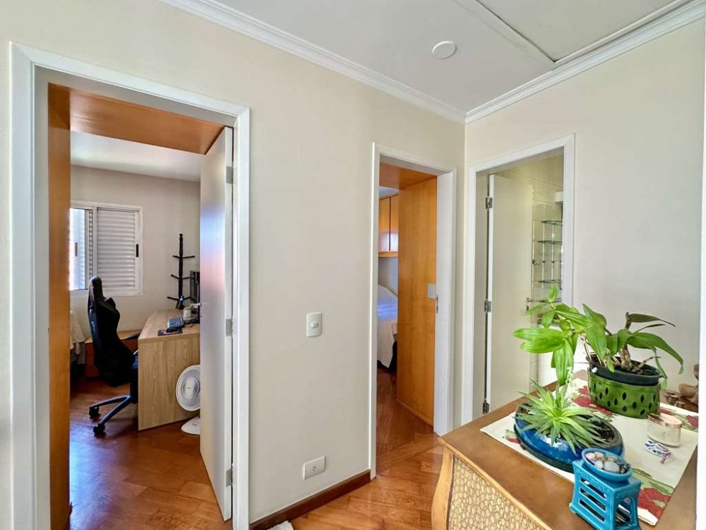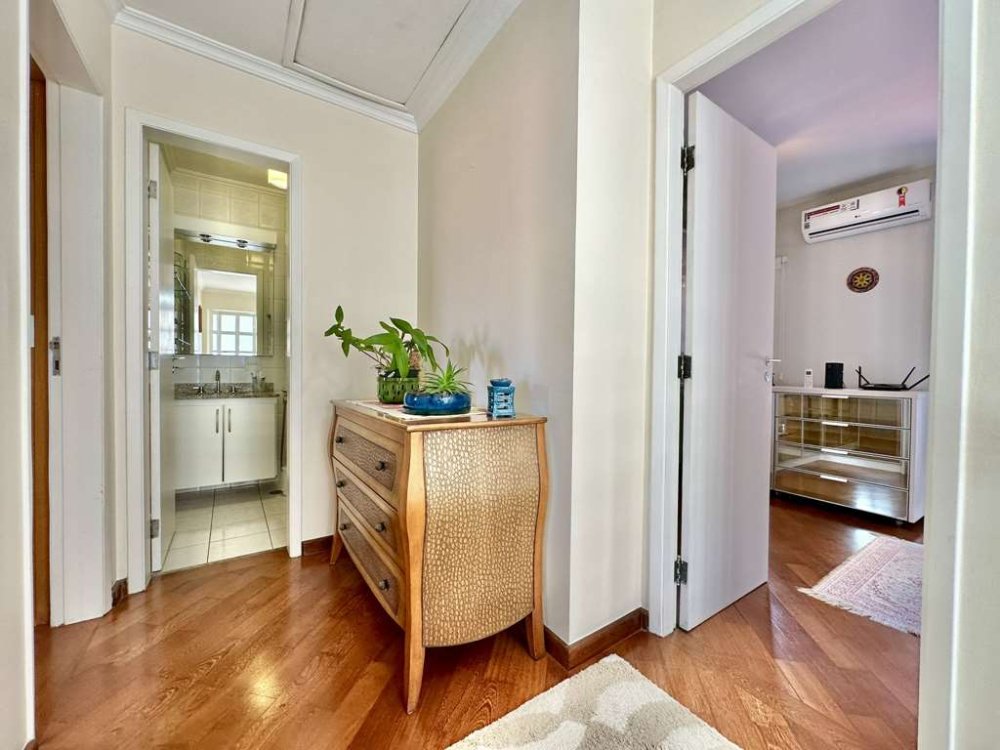 Três dormitórios planejados, dois com ar-condicionado split inverter Q/F e uma suíte com closet, armários com portas espelhadas e terraço.