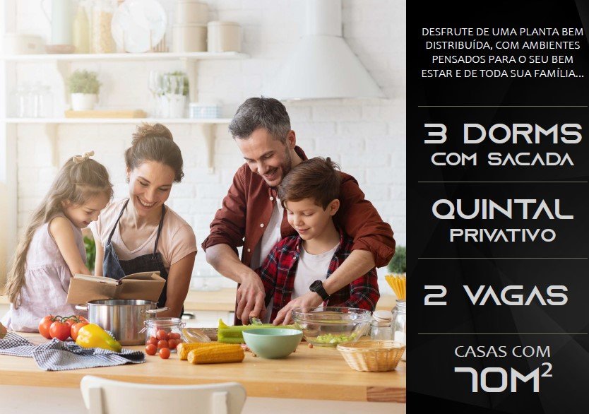 Casa em Condomínio à Venda com 3 dormitórios, sendo 1 suíte, 70,22 m²