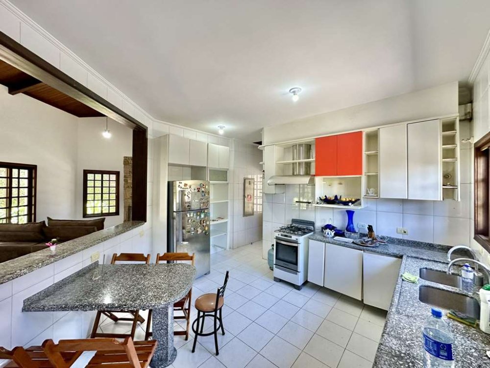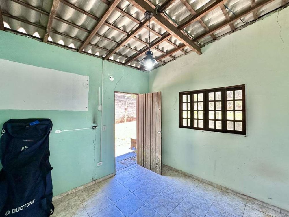 Espaços Internos Confortáveis: A casa é repleta de armários e possui portas e janelas em madeira e vidro com venezianas nos quartos, além de pisos em cerâmica e tábuas largas que conferem charme e praticidade.