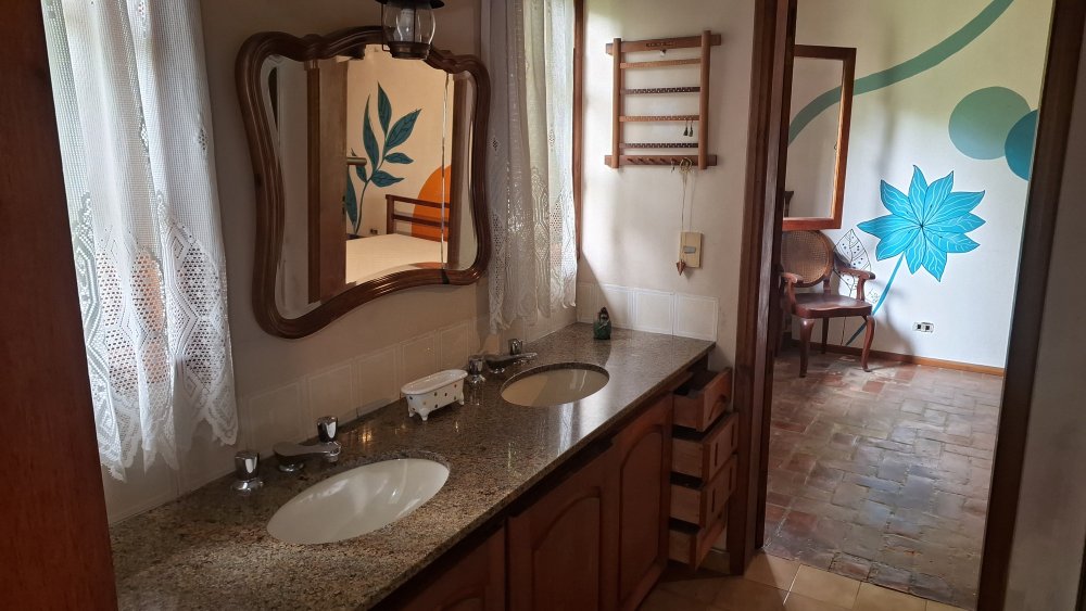 A propriedade é abraçada por um paisagismo cuidadosamente planejado e um pomar repleto de árvores frutíferas, criando um ambiente sereno, perfumado e visualmente deslumbrante. A construção robusta da casa, aliada a uma manutenção impecável, reflete a qualidade e a durabilidade, assegurando funcionalidade e beleza por muitos anos.