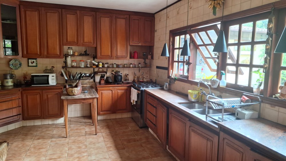 Cozinha Funcional e Equipada: A casa conta com uma aconchegante cozinha em estilo rústico, planejada e totalmente equipada, pronta para inspirar suas aventuras culinárias e facilitar o dia a dia.