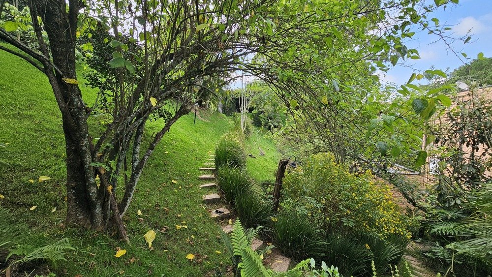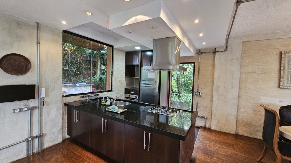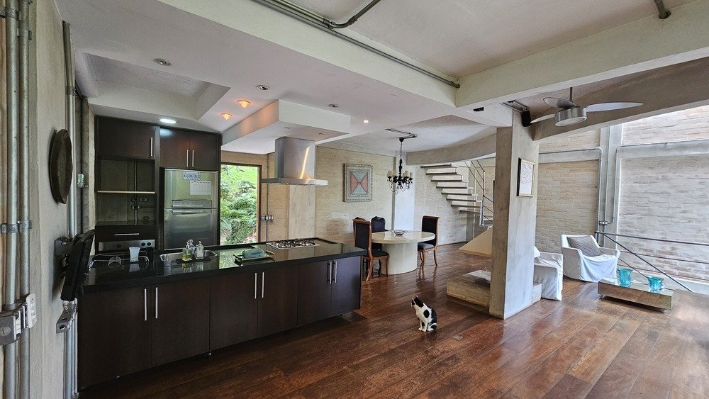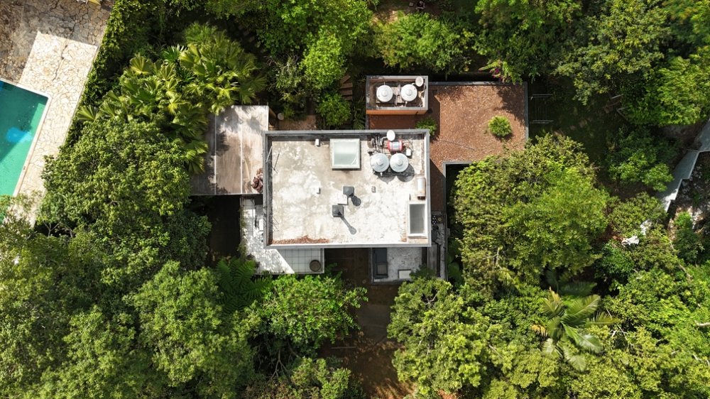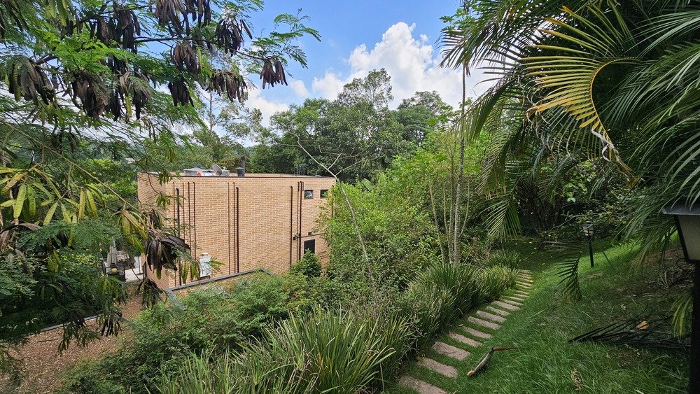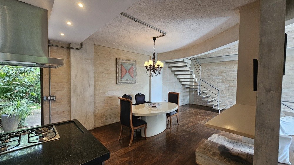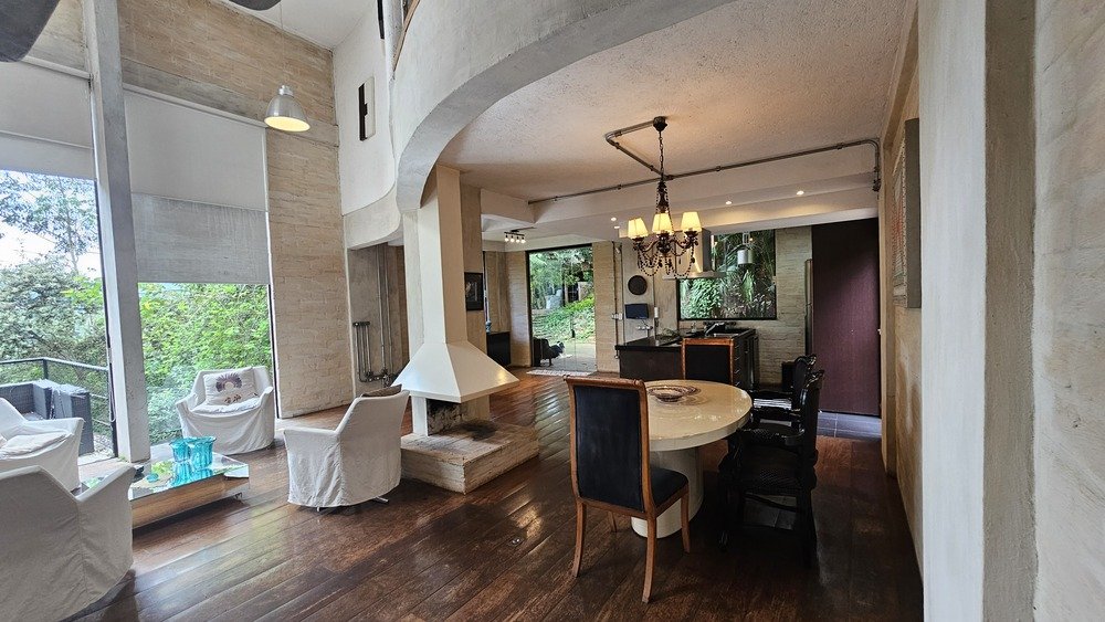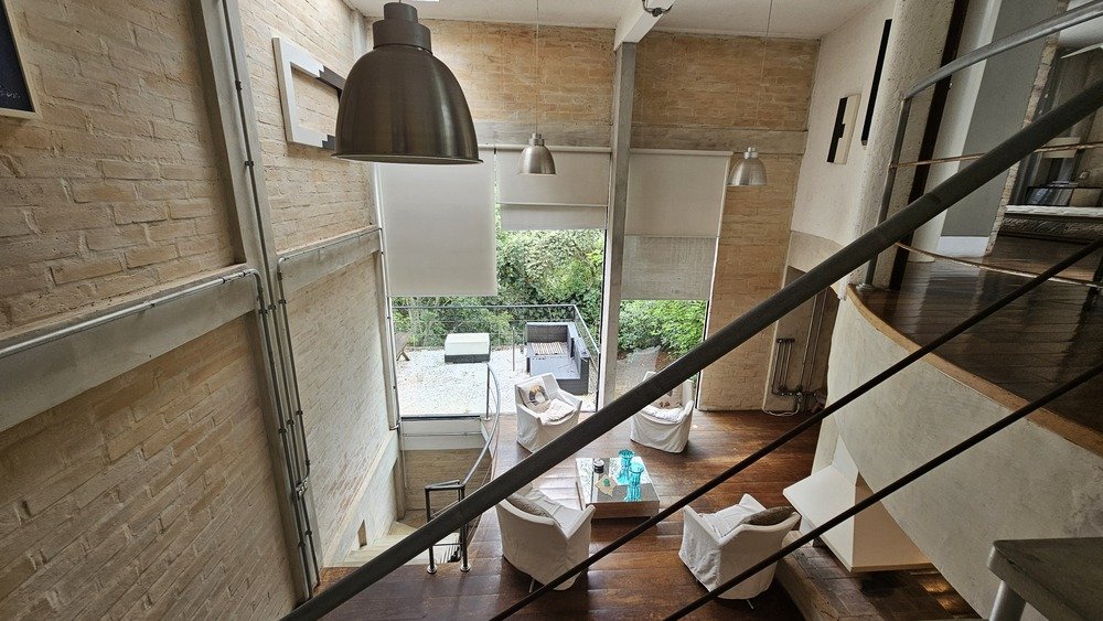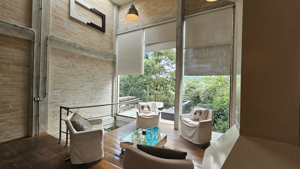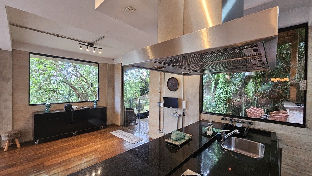Deixe-se envolver pela atmosfera única desta casa em estilo industrial, onde a natureza exuberante se integra perfeitamente ao design moderno e sofisticado.