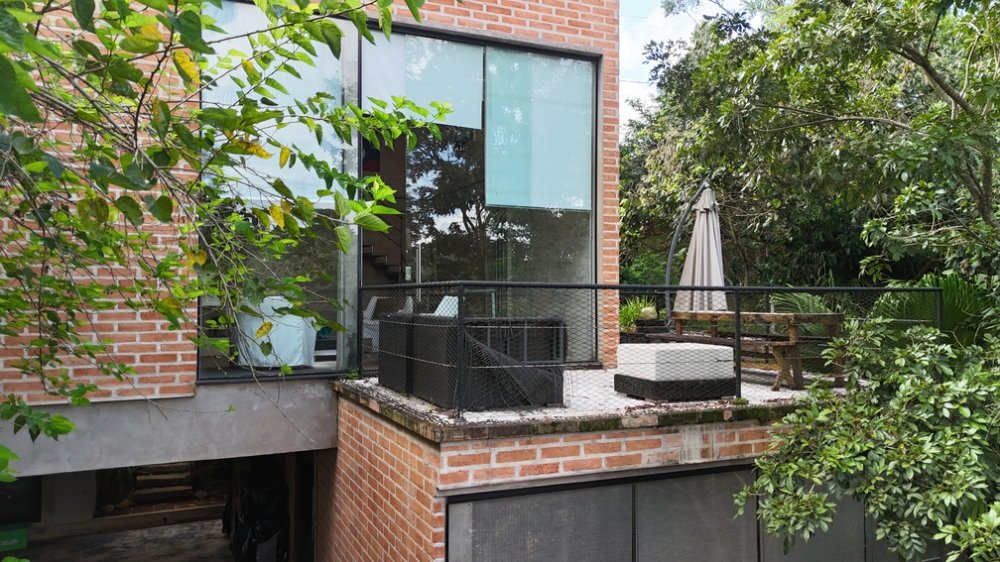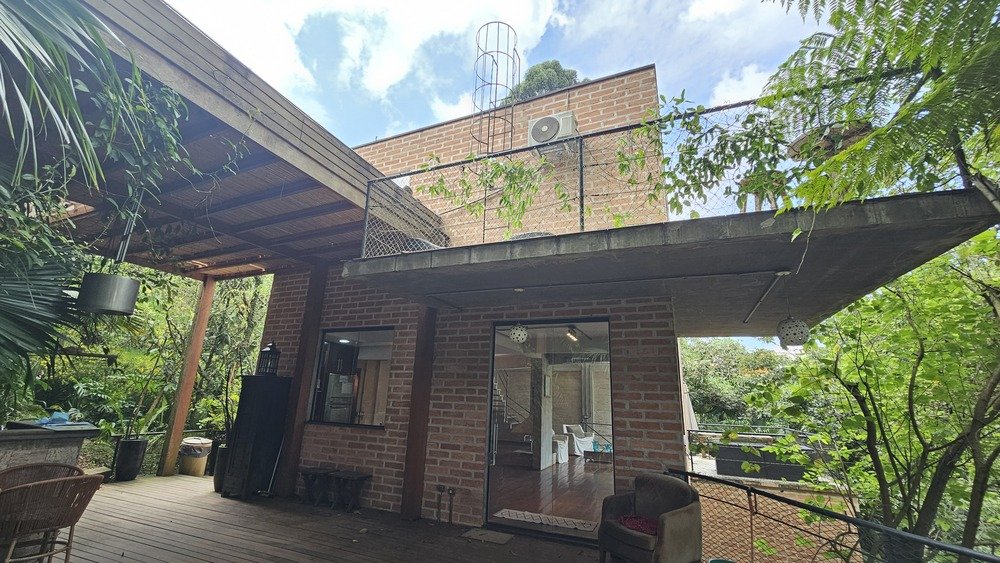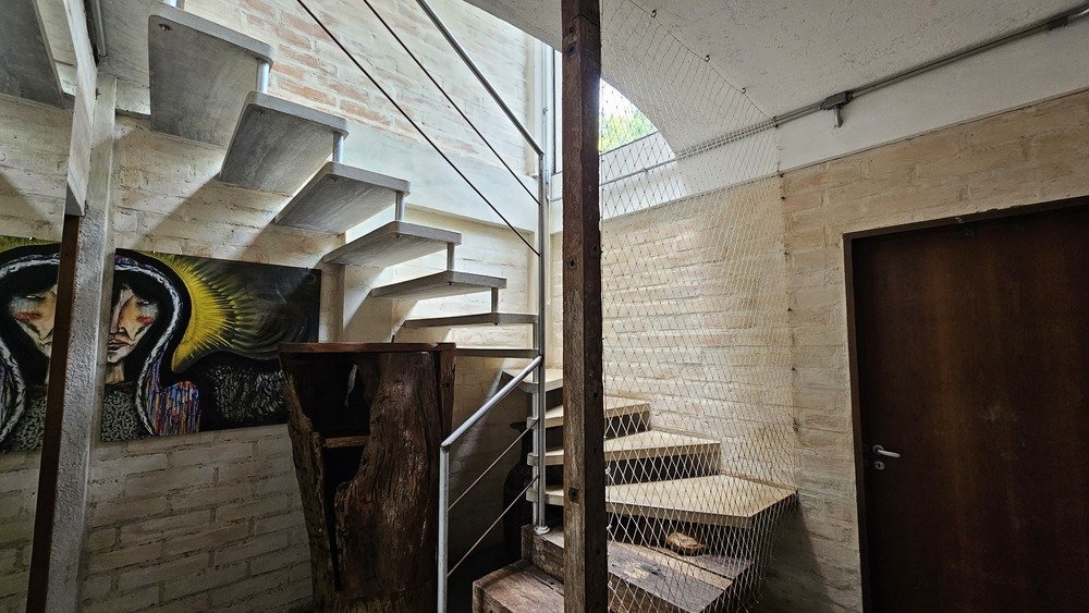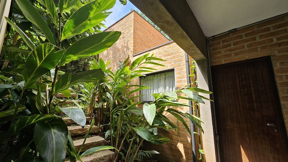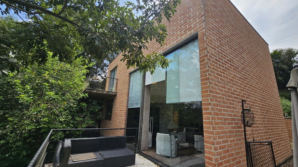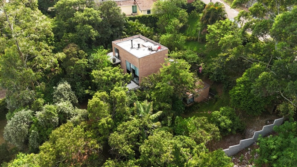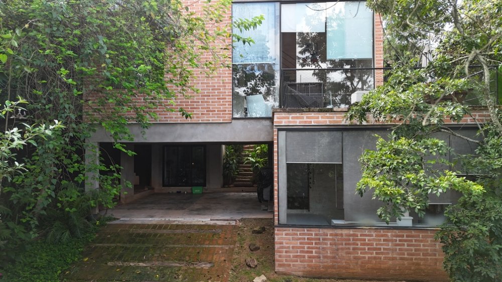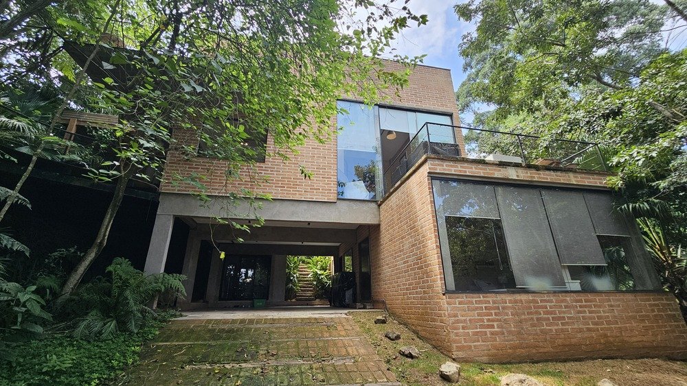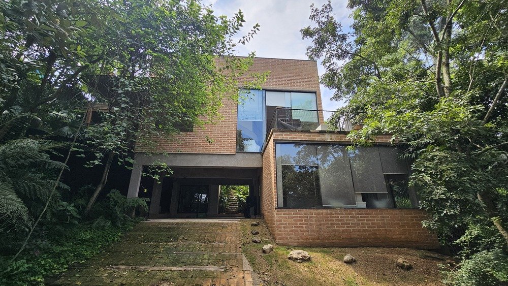 Com tijolos aparentes e grandes janelas que emolduram a paisagem, esta casa oferece uma experiência de moradia incomparável, com vistas deslumbrantes para o verde e uma sensação de paz e tranquilidade.