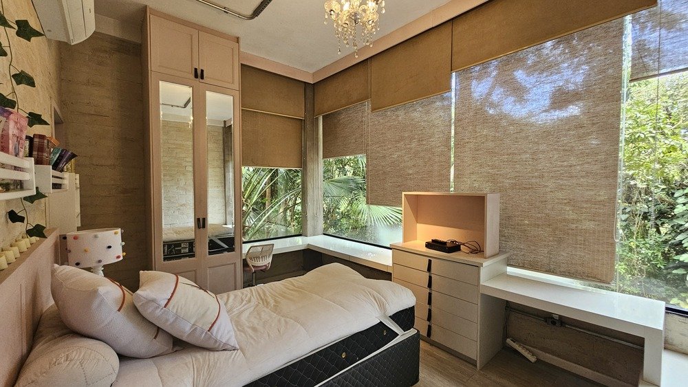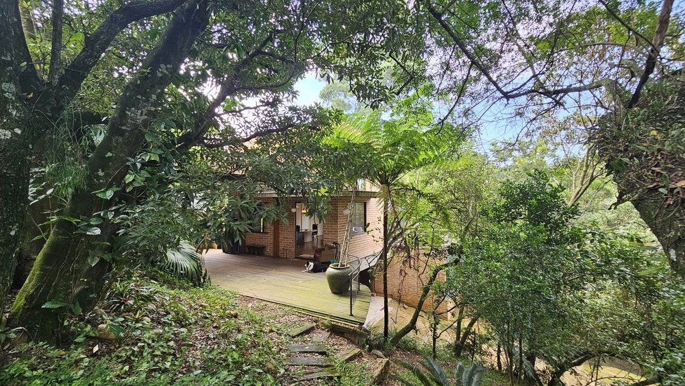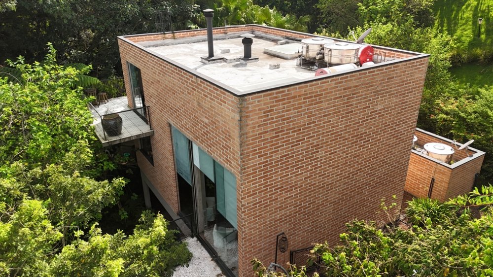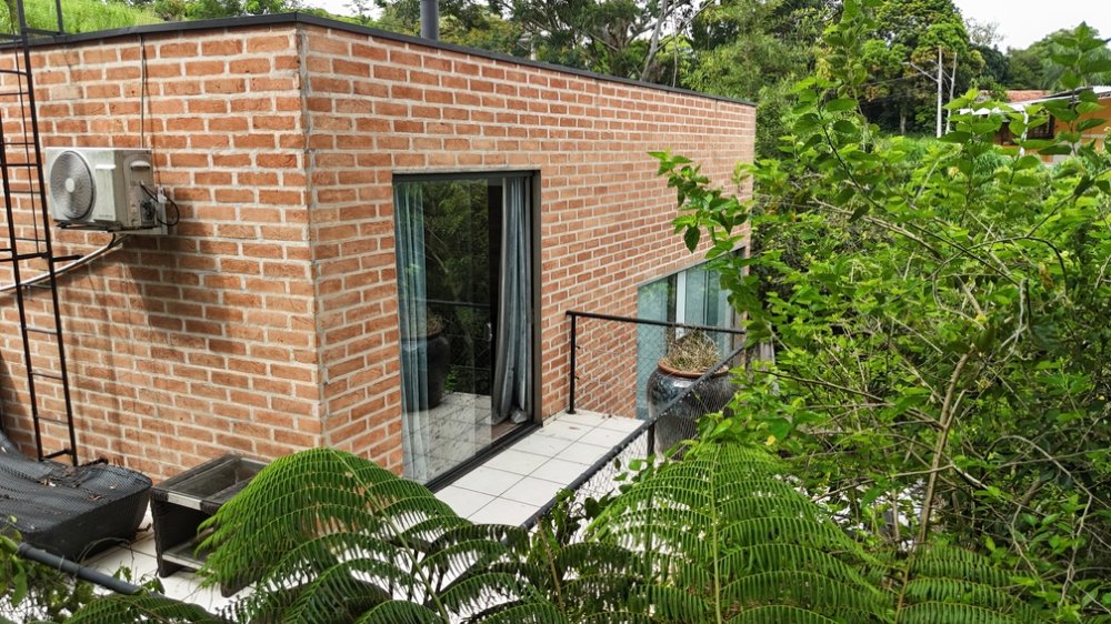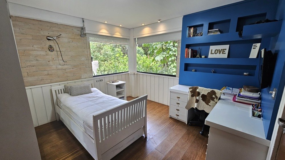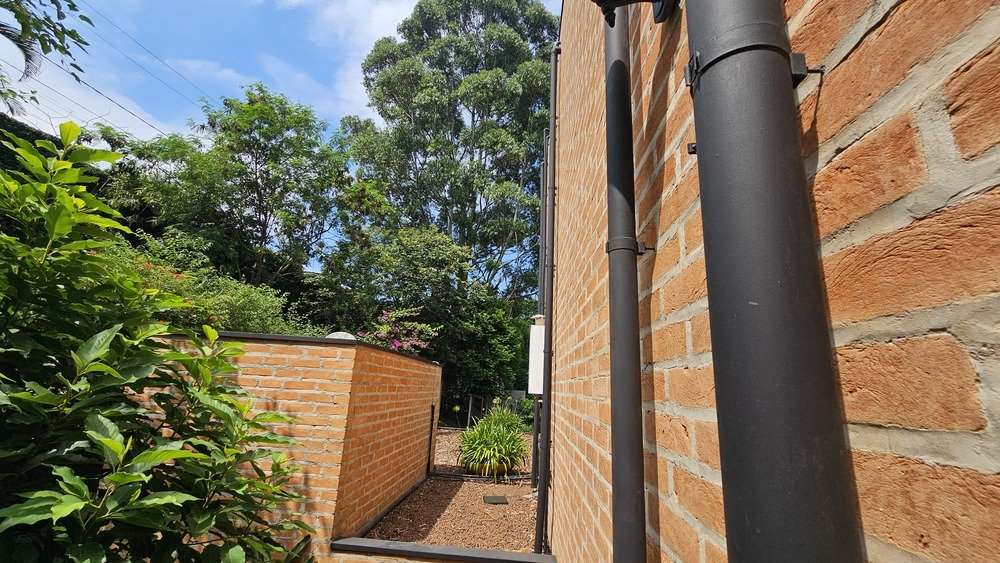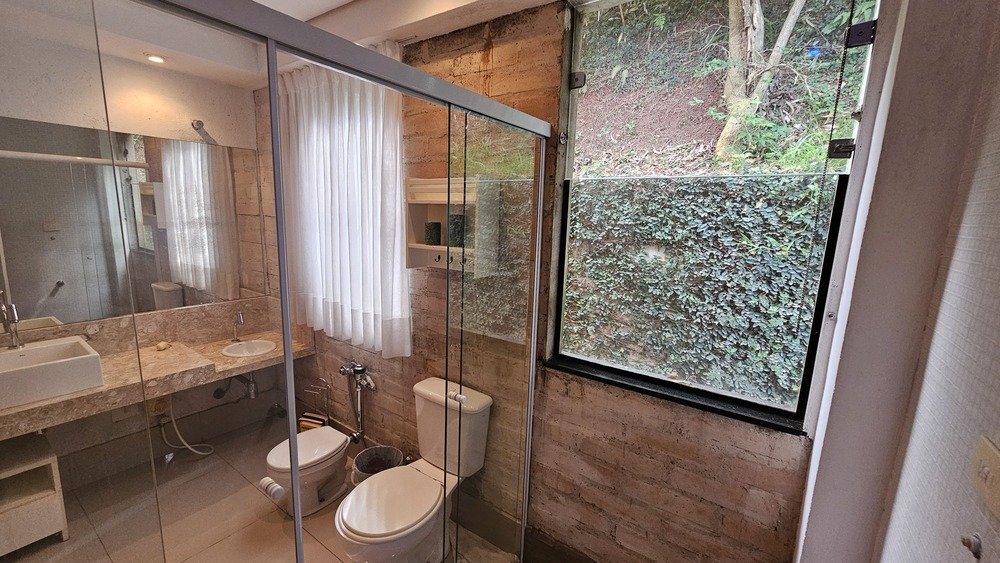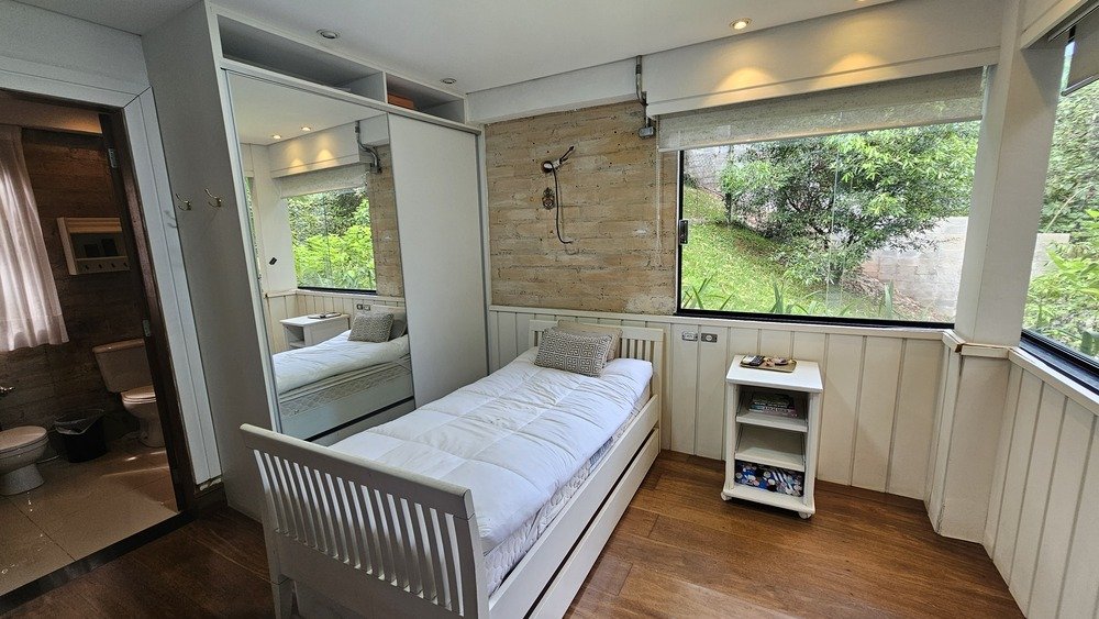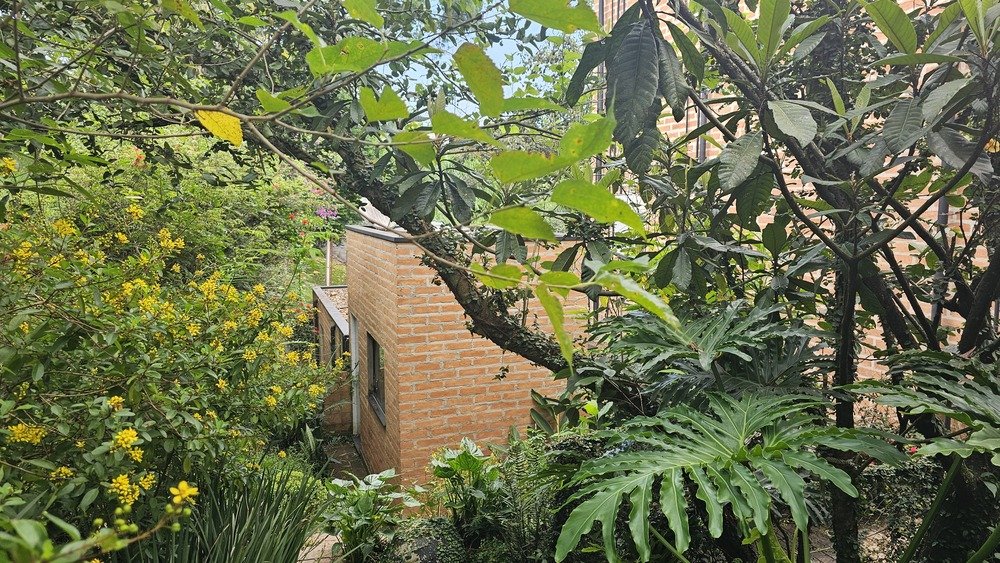 Com tijolos aparentes e grandes janelas que emolduram a paisagem, esta casa oferece uma experiência de moradia incomparável, com vistas deslumbrantes para o verde e uma sensação de paz e tranquilidade.