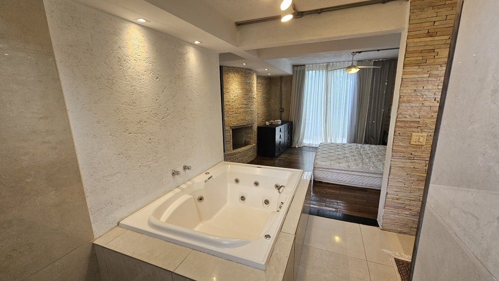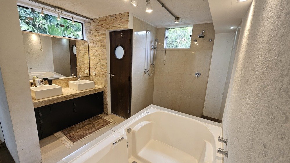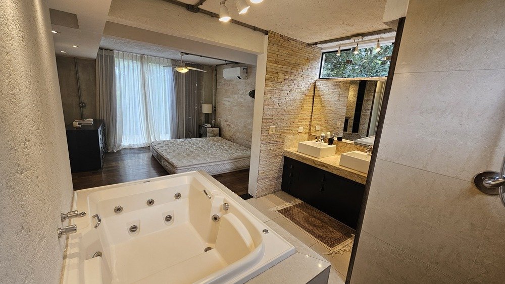 Suíte Master dos Sonhos: Banheira de hidromassagem, banheiro com pias duplas e área de chuveiro, além de closet amplo e integrado ao quarto, criando um ambiente de puro relaxamento.