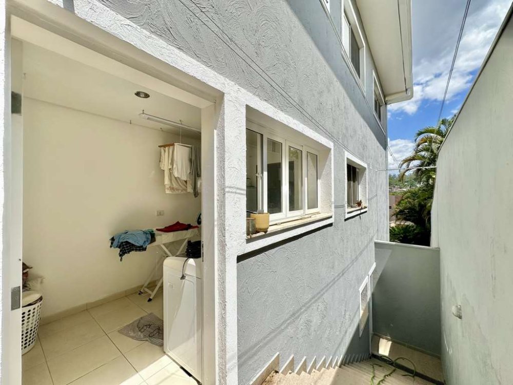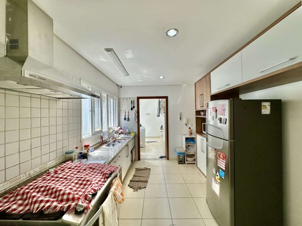 - Lavanderia conectada à cozinha, com áreas de serviço interna e externa, incluindo varal rolante.