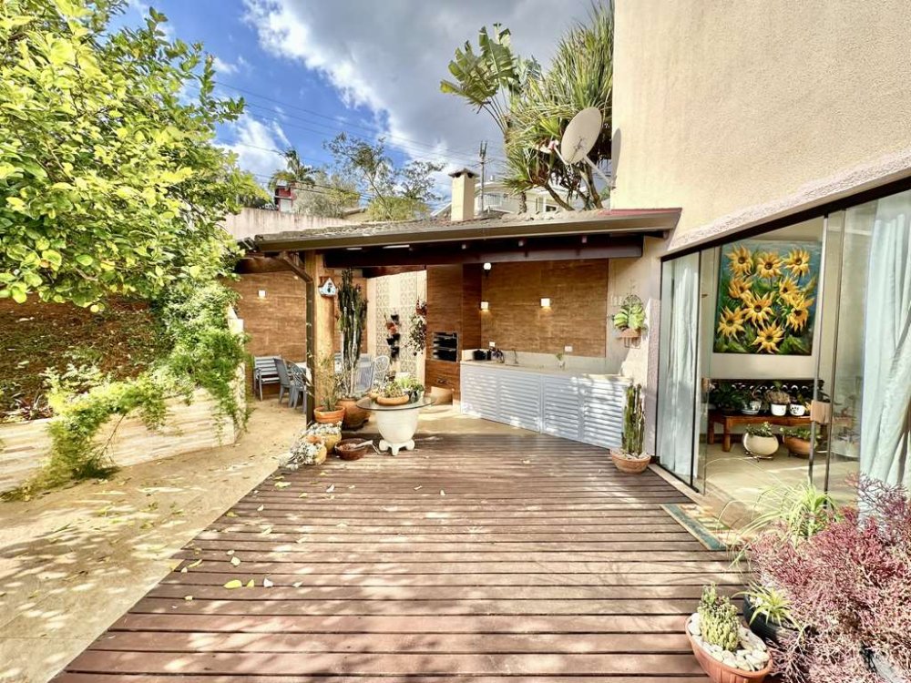 - Área gourmet completa, equipada com churrasqueira, bancada, pia e pergolado coberto com espaço para refeições ao ar livre.