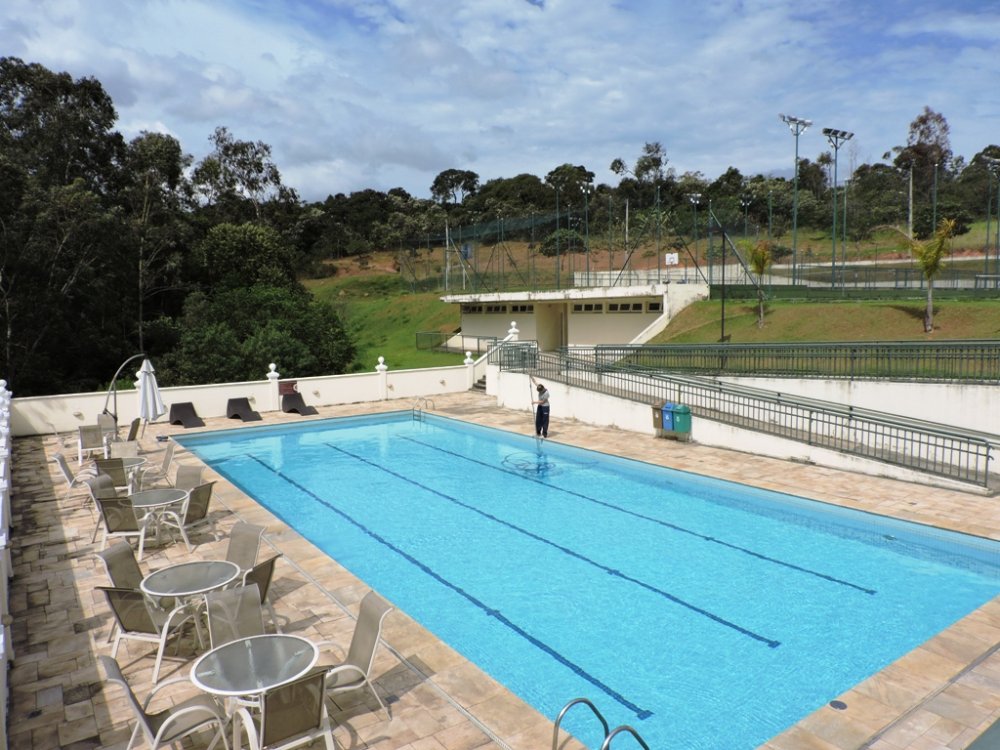 Infraestrutura completa com piscinas, salões de festas, quadras esportivas