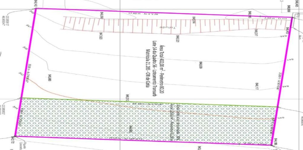 Área de Construção Otimizada: Embora em suave declive, o lote possui 70% de área aproveitável (281,40 m²) com a supressão da mata já autorizada, e 30% (120,60 m²) dedicado à preservação, conforme planta e levantamento topográfico já realizados.