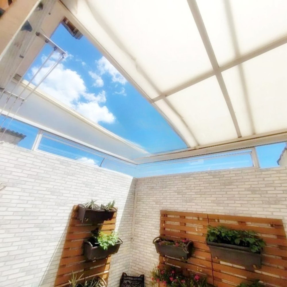 Quintal privativo com teto retrátil, perfeito para momentos de lazer e relaxamento.