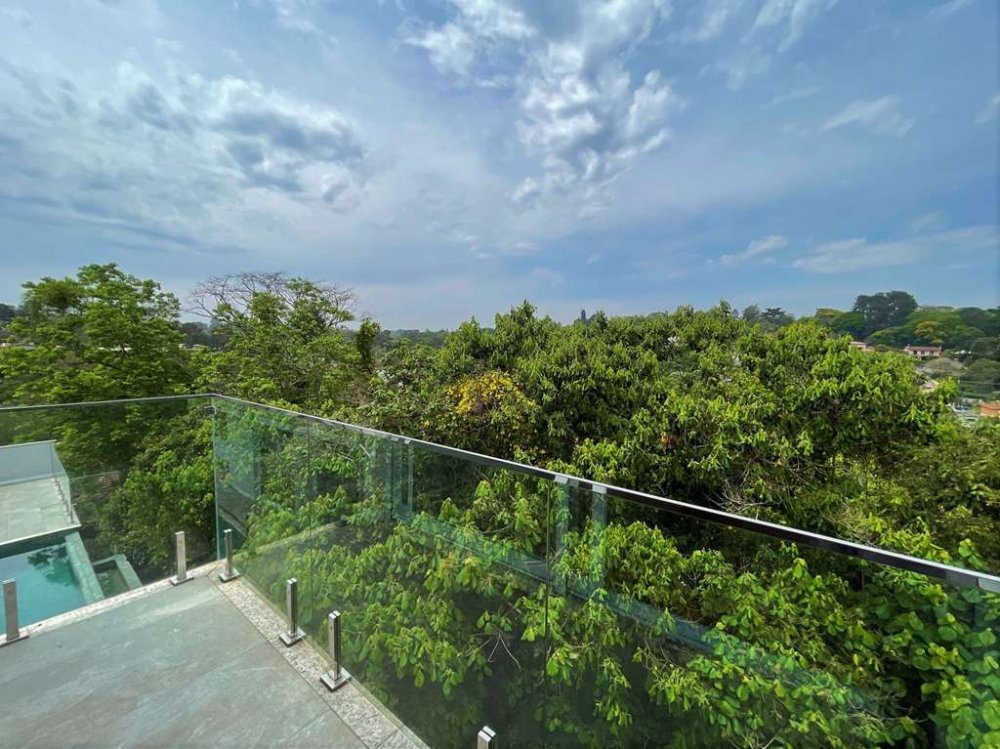 O terreno tem 1.987,81 m² com 80% de área livre, composto por jardim e bosque particular com árvores centenárias preservadas.