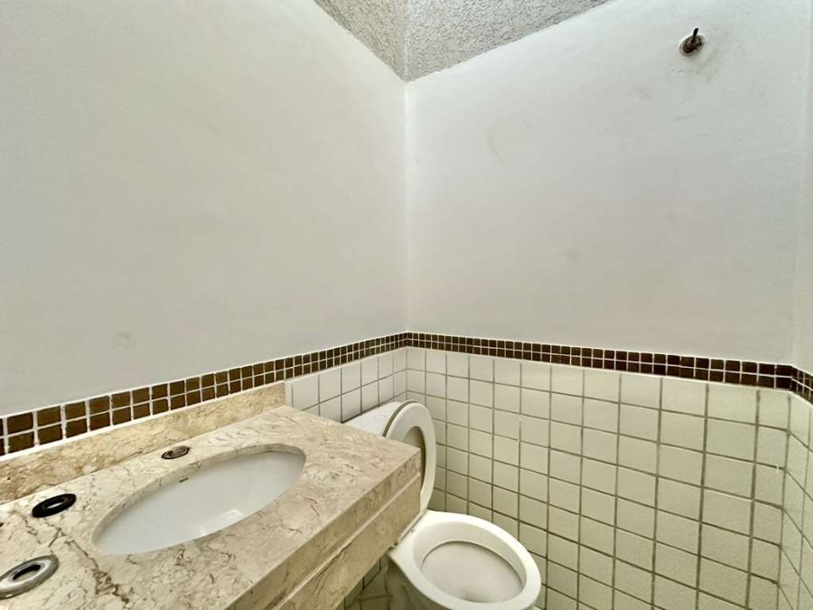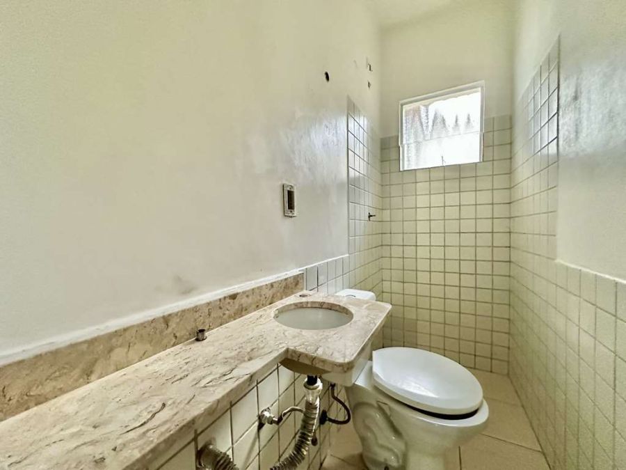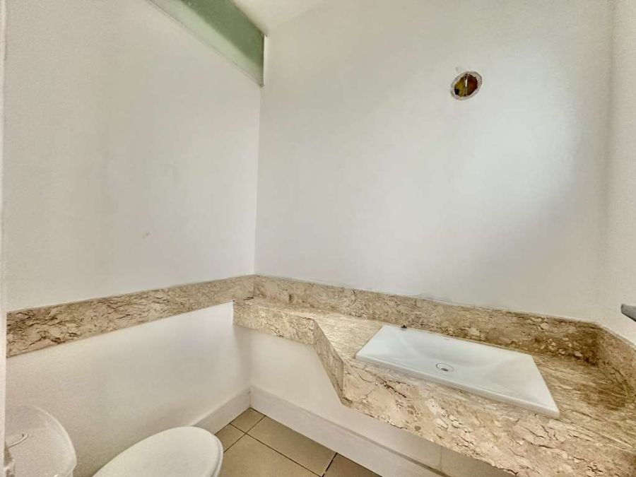 Lavabo Elegante: Com tampo em mármore e piso em porcelanato.