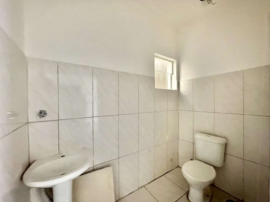 Banheiro Completo: Com tampo em Travertino e espaço para box e chuveiro elétrico.