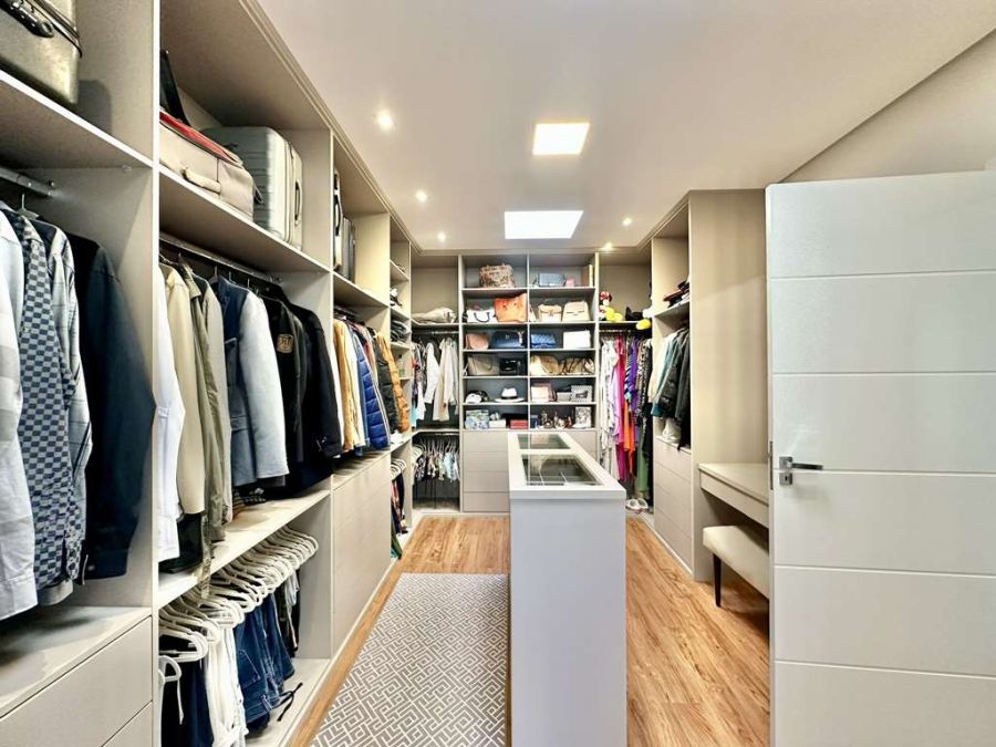 Garagem e Conveniência: Ampla garagem para 8 vagas (4 cobertas), com armários planejados, ideal para ferramentas e até uma pequena oficina organizada. Depósitos planejados para máxima organização.