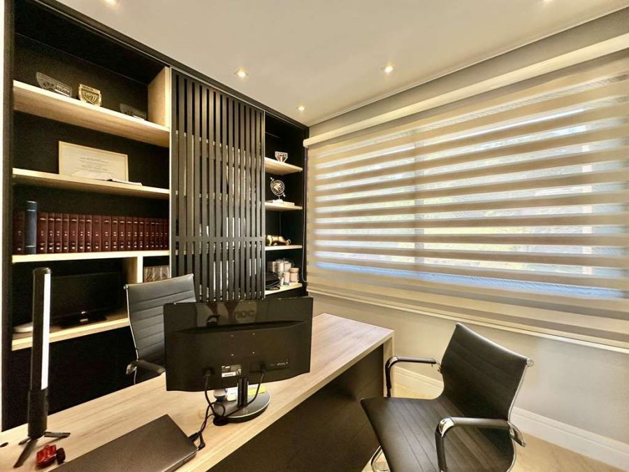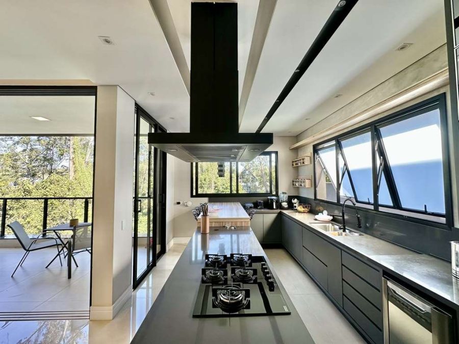 Espaços Planejados: O imóvel é totalmente repleto de armários planejados, com portas e janelas em alumínio preto e vidro, e persianas elétricas nos quartos para sua total comodidade.