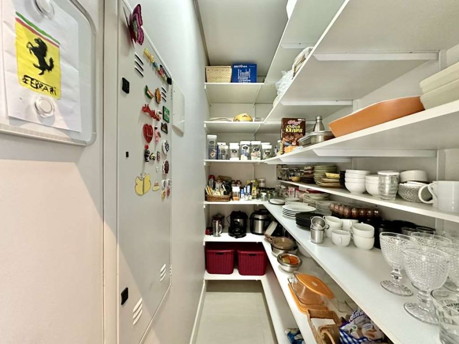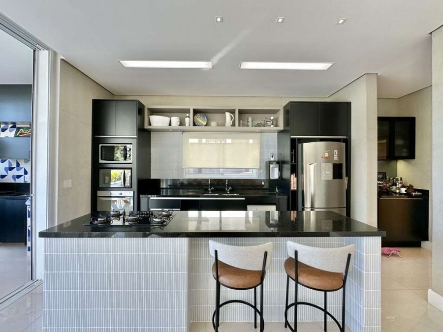 Cozinha Completa: Totalmente planejada, com despensa, bancada em granito, duas cubas inox, balcão para 4 bancos, fogão Brastemp Ative 5 bocas cooktop e forno Brastemp.