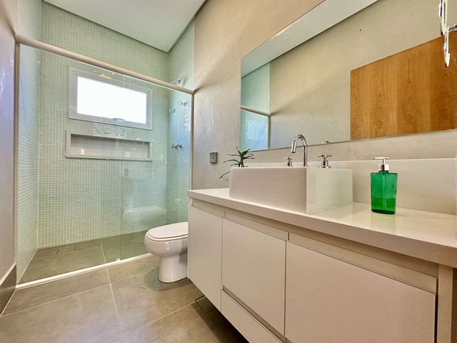 Vestiário Completo: Com tampo em granito, box de vidro e nicho.