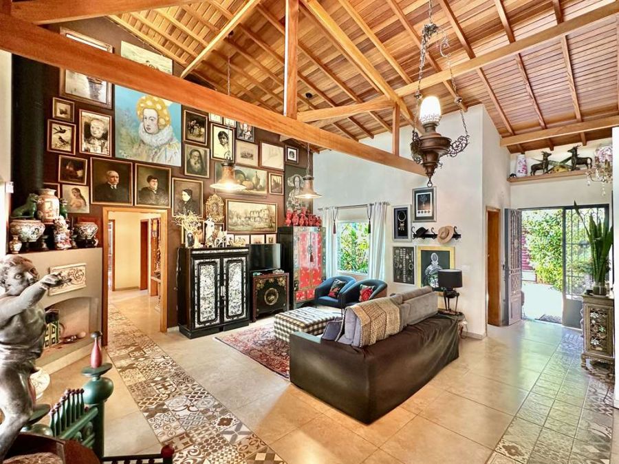 Descubra o encanto de viver em uma casa térrea única, com estilo casa de campo e total acessibilidade, onde cada canto revela a paixão pela arte e pela natureza. Projetada para morar por um arquiteto e artista, esta residência combina acabamentos diferenciados e materiais de demolição com a modernidade e o conforto, tudo em um condomínio tranquilo, com muita natureza e privacidade.